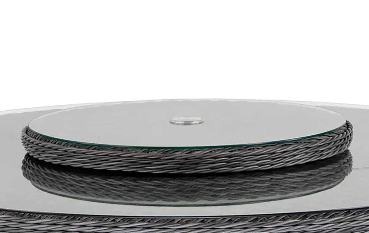 Glasskiva i ofärgat tempererat glas med hål för parasoll i mitten. Lock för parasollhålet ingår ej.