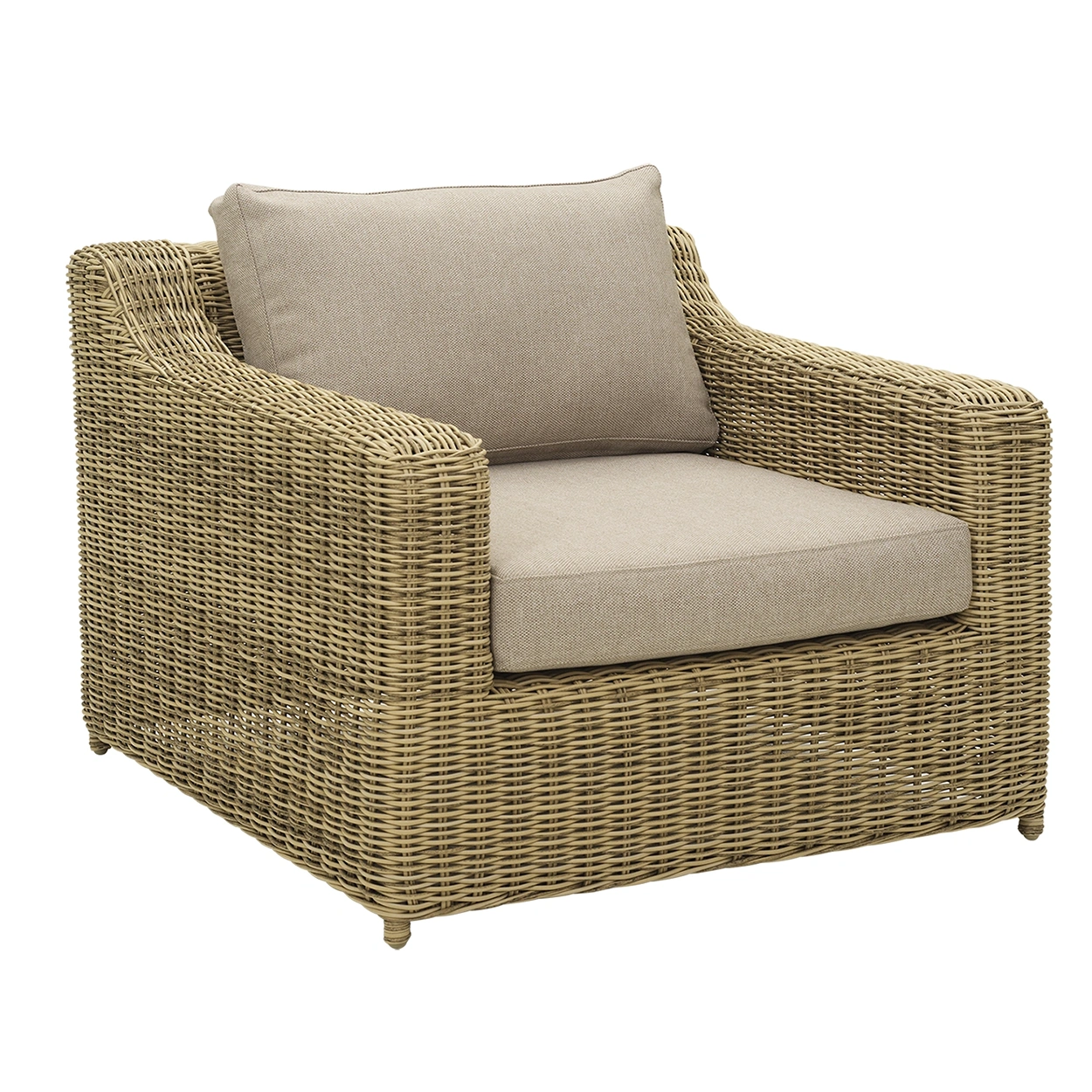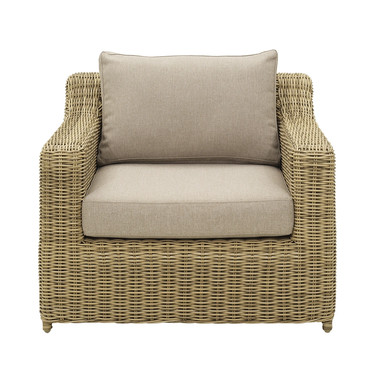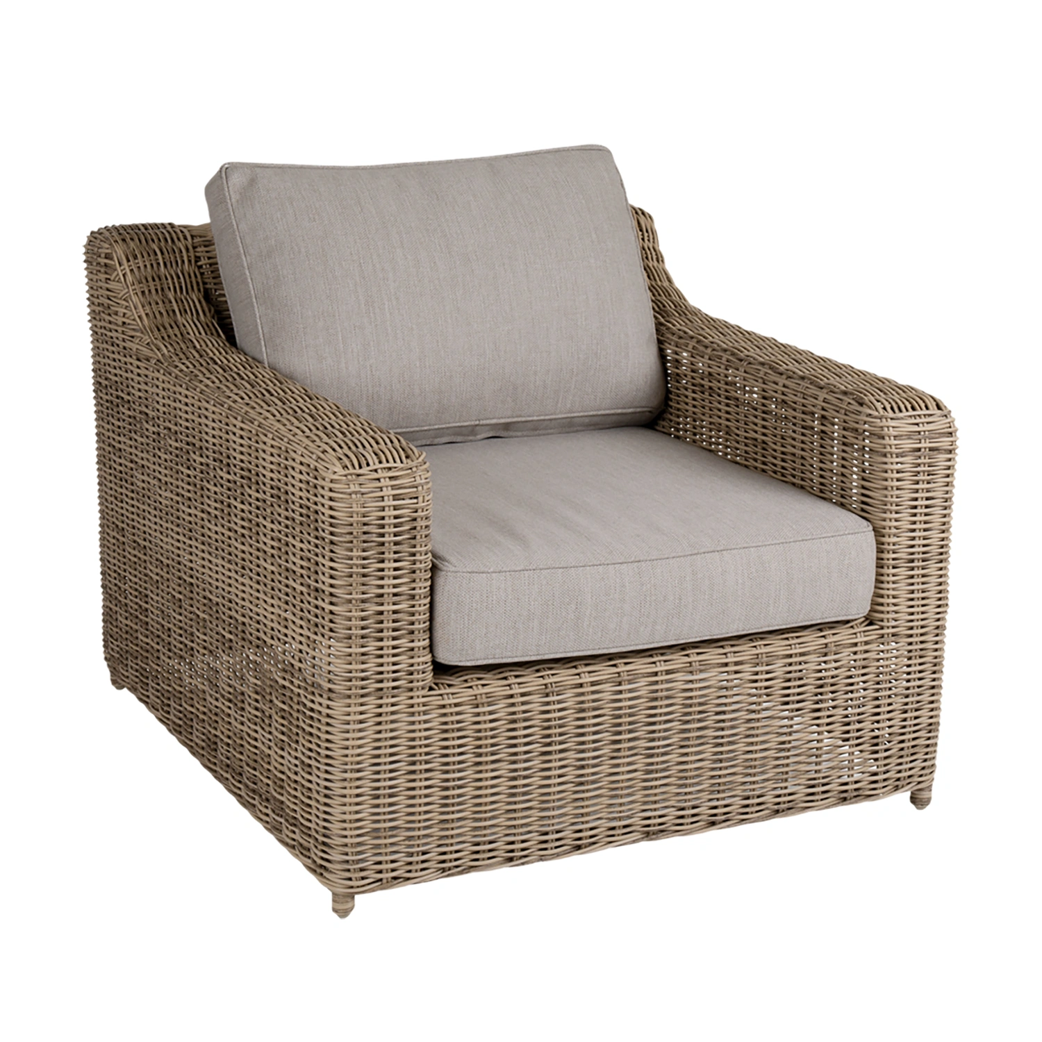 Glendon är en rymlig och stabil fåtölj med klassisk design i rund premiumkonstrotting. Den rustika naturfärgen och de beigefärgade dynorna skapar en varm och inbjudande känsla. Tack vare den generösa sittkomforten och den behagliga lutningen blir Glendon en favorit för långa stunder av avkoppling.
