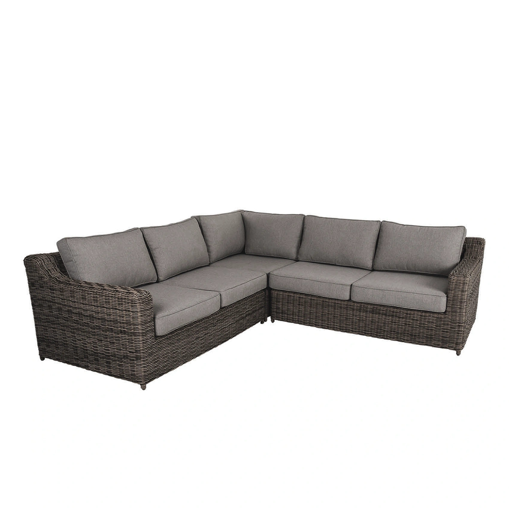 Serien Glendon kännetecknas av sin klassiska design i rund konstrotting och generösa sittdjup som gör att du vill koppla av länge. Hörndelen tillsammans med avslutsdelarna skapar en harmonisk hörnsoffa som ramar in uteplatsen och ger gott om plats för avkoppling. Dynorna har vattenavvisande TPU-liner och ingår i setet.