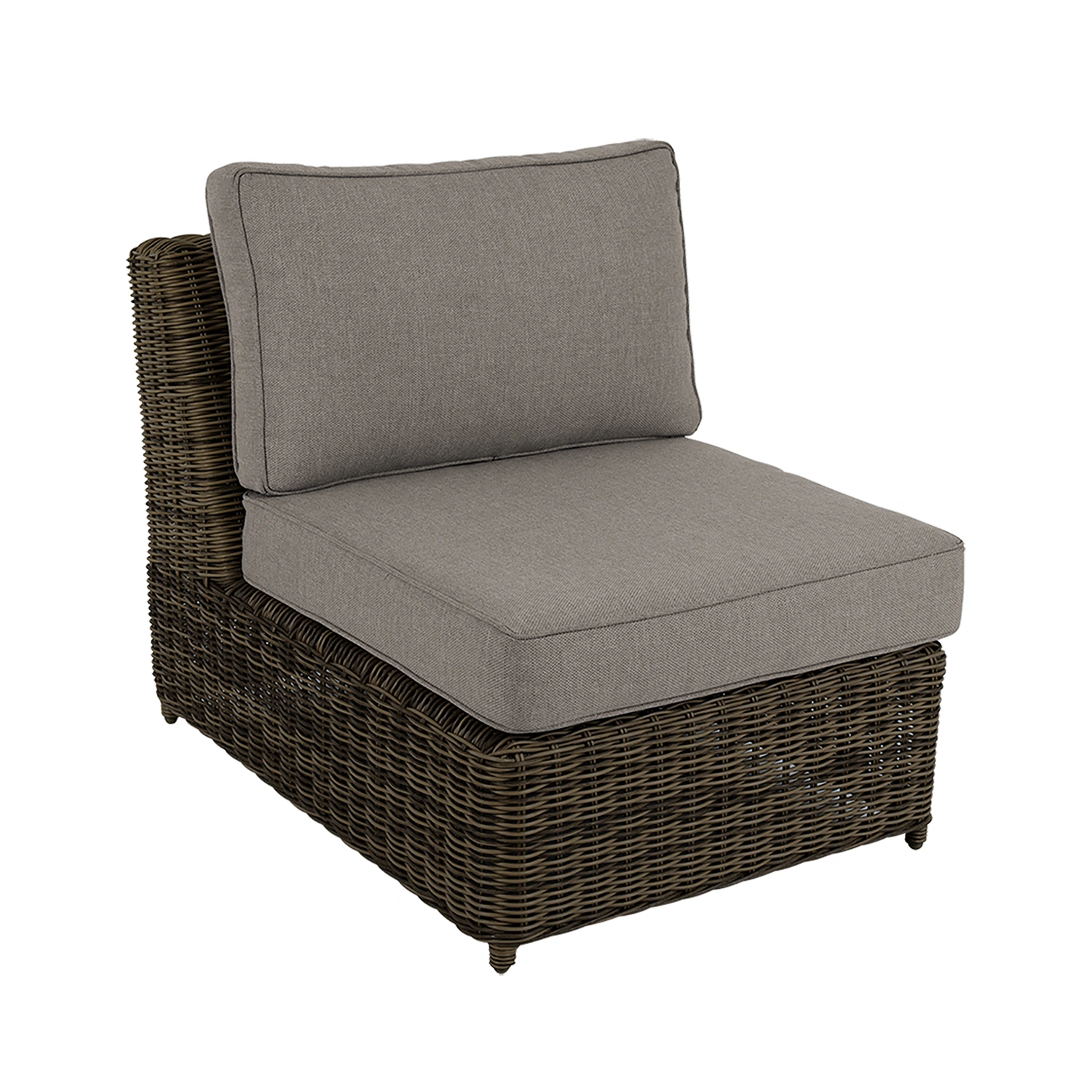 Serien Glendon kännetecknas av sin klassiska design i rund konstrotting och generösa sittdjup som gör att du vill koppla av länge. Mittdelen används i kombination med hörndelar och avslutsdelar för att bygga en hörnsoffa eller grupp i önskad storlek. Dynorna har vattenavvisande TPU-liner och ingår i setet.