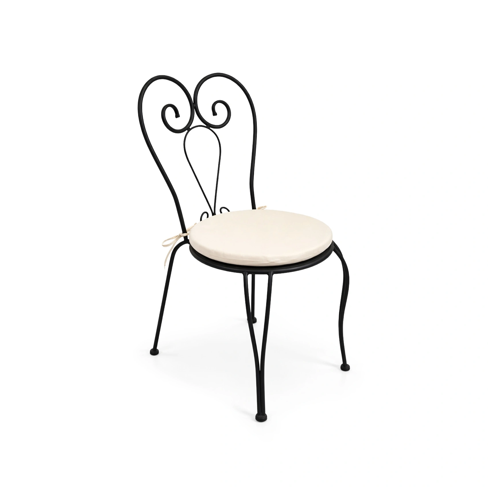 Denna caféstol i pulverlackerat stål kombinerar elegans med karaktär och ger uteplatsen ett stilfullt uttryck. Den är utformad för att skapa en personlig och inbjudande atmosfär, perfekt för en kopp kaffe i solen eller en avkopplande stund utomhus.