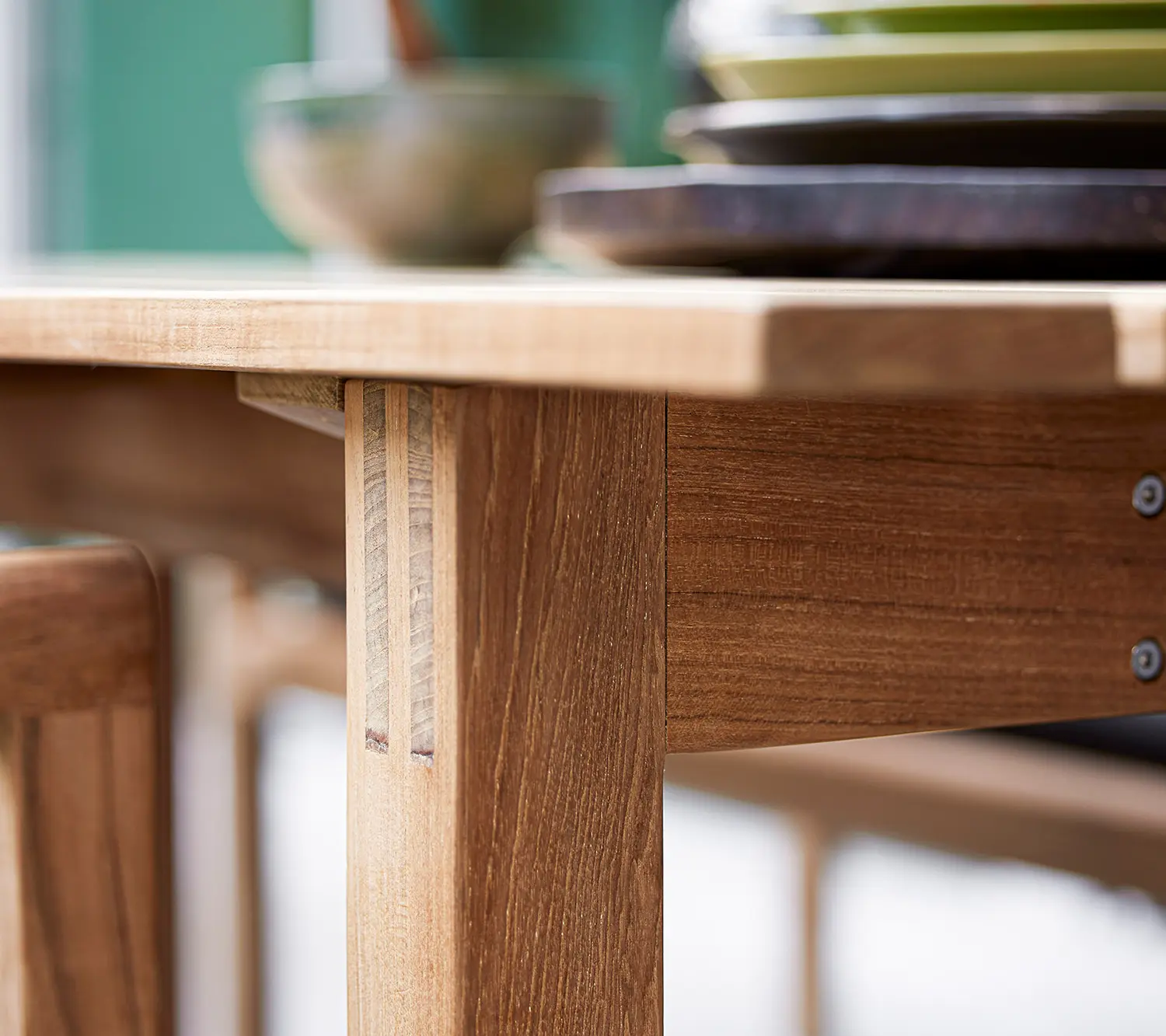 Grace matbord är designat av den danska duon Foersom & Hiort-Lorenzen MDD. Bordet är en nytolkning av dem klassiska skandinaviska teakmöblerna. Matbordet är tillverkat av Grade A teak, vilket är det finaste på marknaden. Med tiden kommer teak att få en silvergrå patina om den lämnas obehandlad. Designen uttrycker en vacker balans mellan nordiska rena linjer och modern enkelhet. Matcha matbordet med Grace bänk och stolar för att fullända utseendet eller matcha det med någon av våra andra färgglada matbordsstolar för en livfull look.