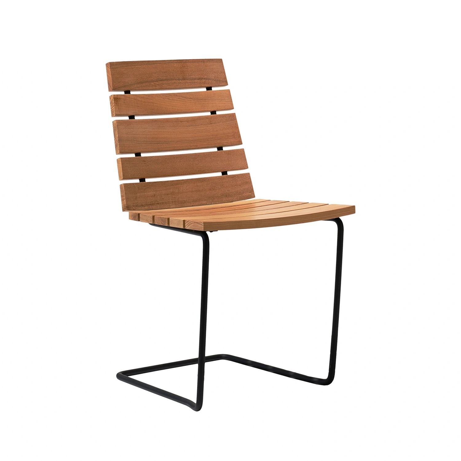 Grinda är en lätt matserie för utomhusmiljöer som består av stolar, bänk och olika bord. Tillverkade i teak med svartmålat stativ i fjäderstål. Trots ett avskalat yttre gör den sviktade ramen och de rundade träribborna stolen mycket bekväm. Du kan välja att olja teaken en gång om året för att bibehålla utseendet eller avstå från det och se hur den får en vackert silvergrå ton med tiden.