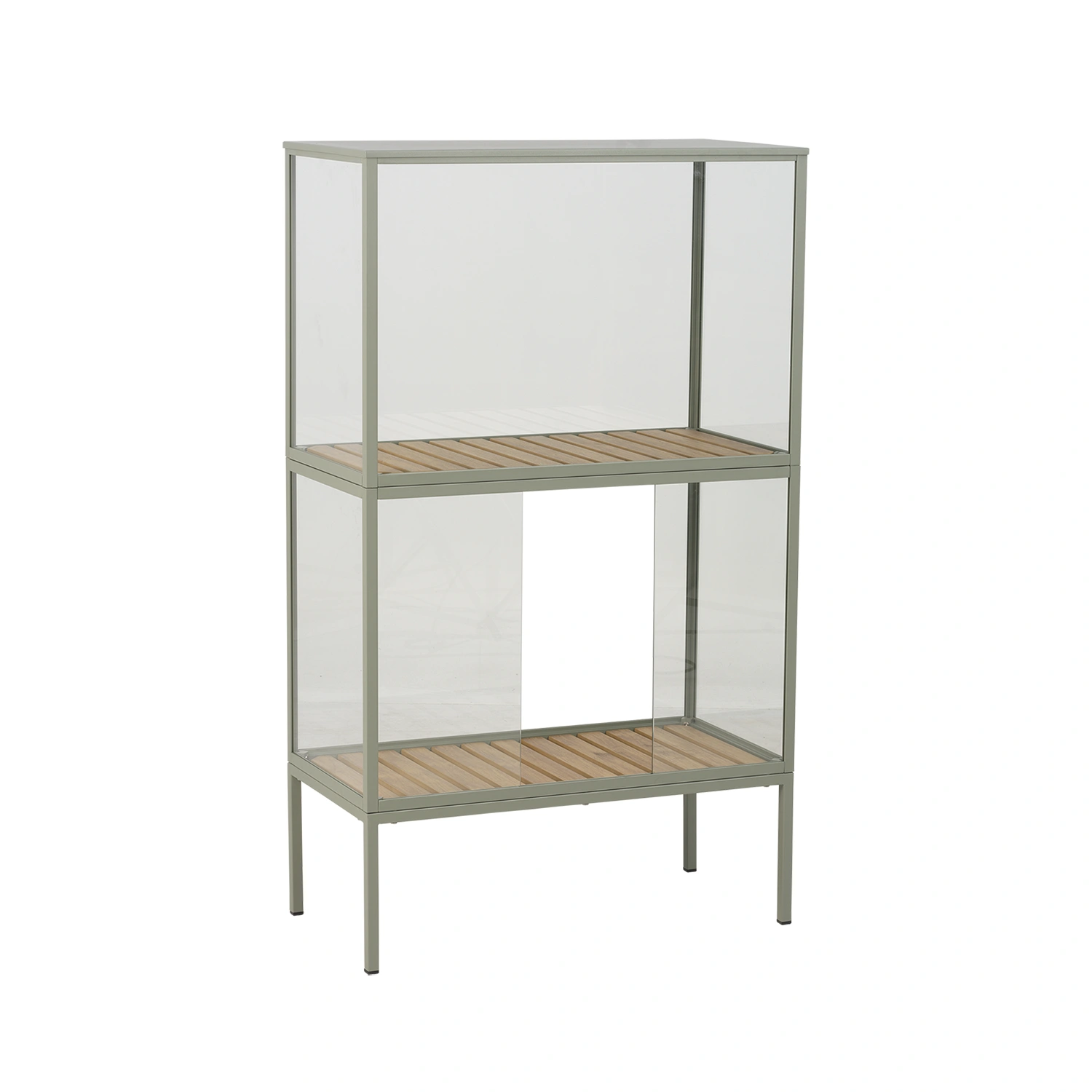 Skåpet är tillverkat i pulverlackerad aluminium för lång hållbarhet och rostskydd, medan härdat glas ger både ett elegant uttryck och extra tålighet. Hyllorna är tillverkat i Nonwood (syntetiskt trä). Det avtagbara taket gör det lätt att ventilera och komma åt växterna, och justerbara fötter ser till att skåpet står stadigt även på ojämna underlag. Klätterringar ingår för att ge stöd åt tomater, gurka eller andra klätterväxter.