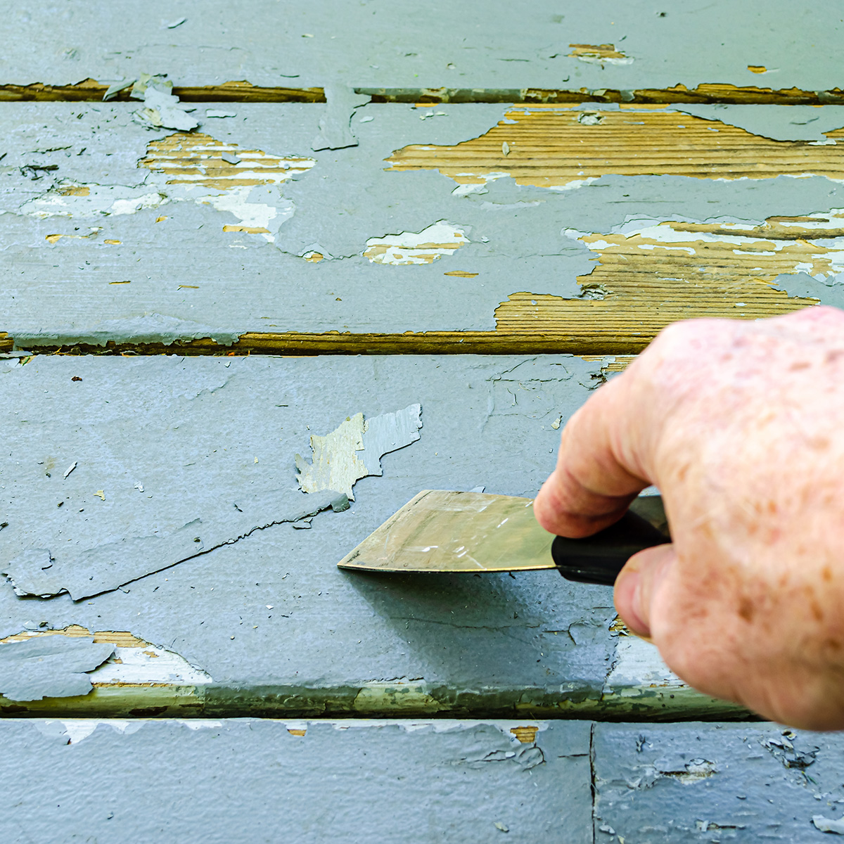 Om bordet är målat eller lackat behöver du skrapa rent bordet först. Försök få bort så mycket av den gamla ytbehandlingen som möjligt innan du börjar slipa.