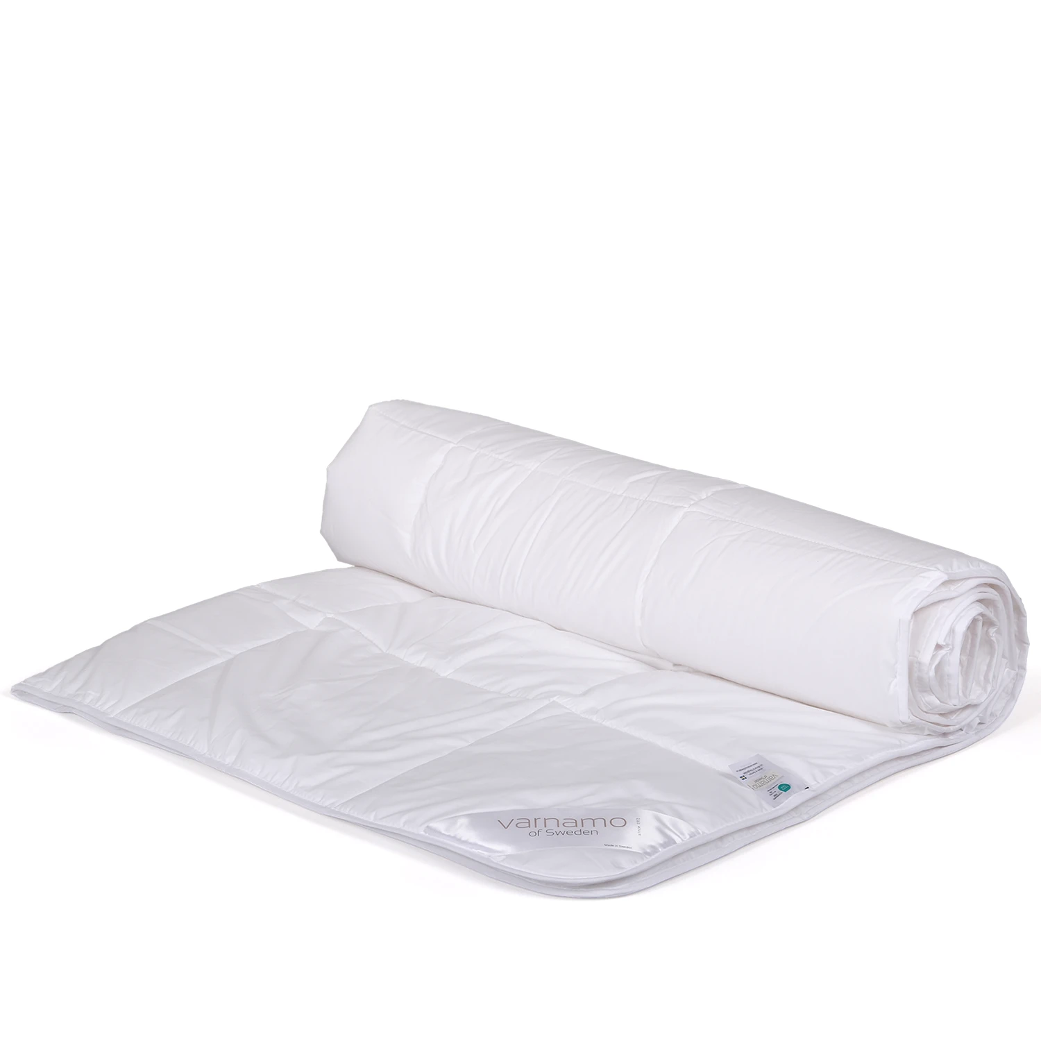 Stoppat med silikoniserad Softfilling fiber – certifierad återvunnen polyesterhålfiber av högsta kvalitet. Egenskaperna från polyesterhålfibern ger täcket bra isoleringsförmåga och livslängd. Täcket är rutstickat och sydd med en vit bandkant.