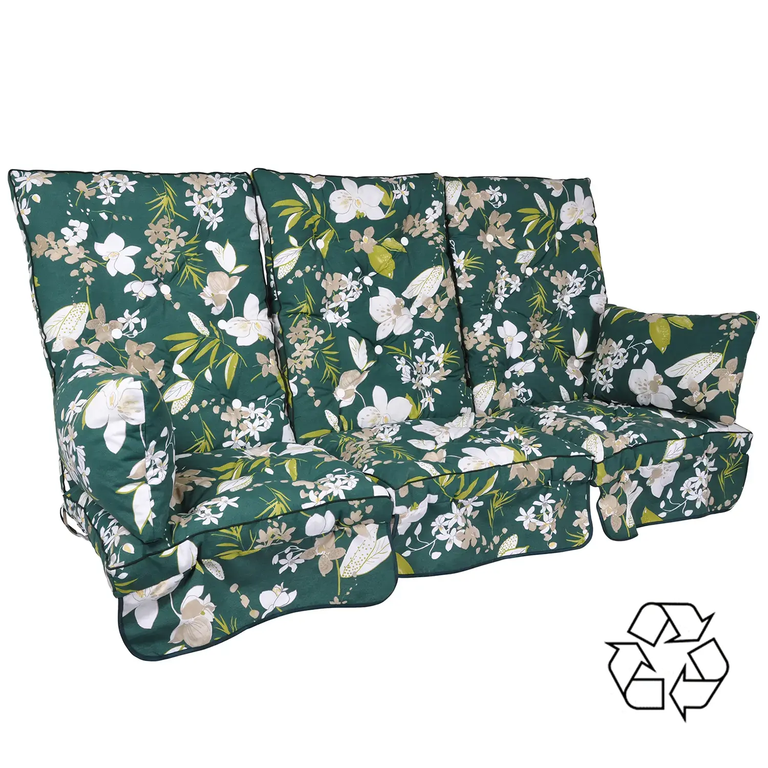 Dynorna är boxsydda och är sydda med kederlist, knappar i vit plast i sits och rygg. Dynan är sydd i Botanical mönstrat tyg som är tillverkat av återvunnen bomull, polyester och annan textil. Baksidan är i vit PVC-plast. Mellan sitsen och ryggen sitter två par snören för möjlighet att knyta fast dynan i hammocken.