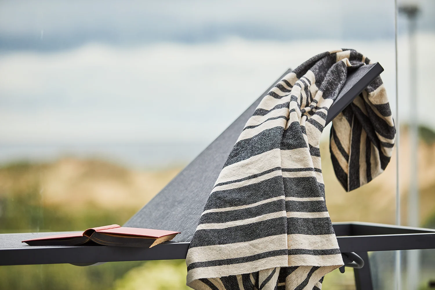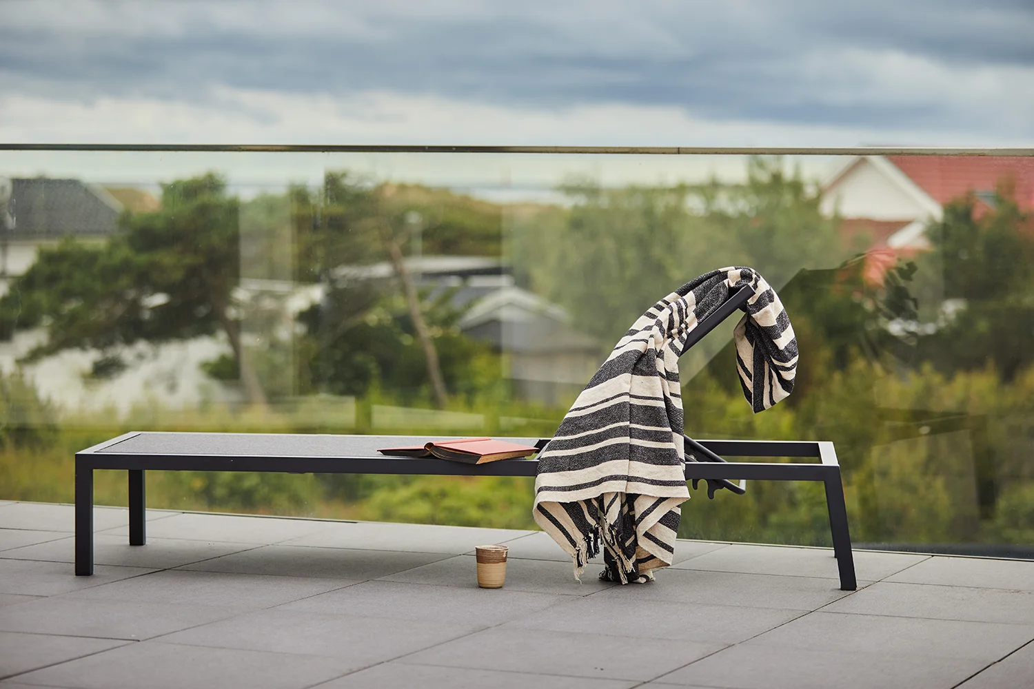Stilren och underhållsfri solsäng med gott om utrymme. Tillverkad i aluminium och textilene som är ett slitstarkt och motståndskraftigt material.