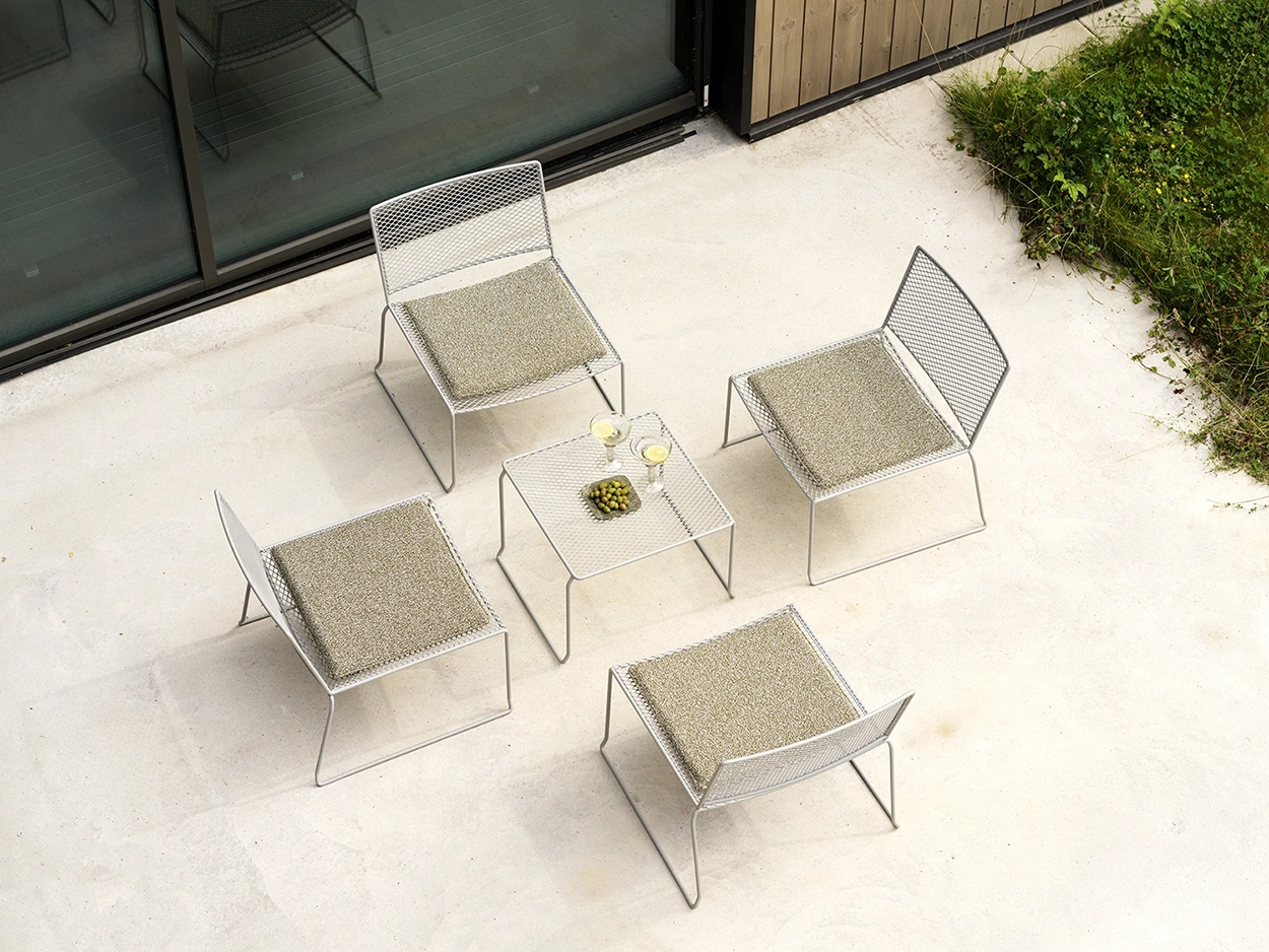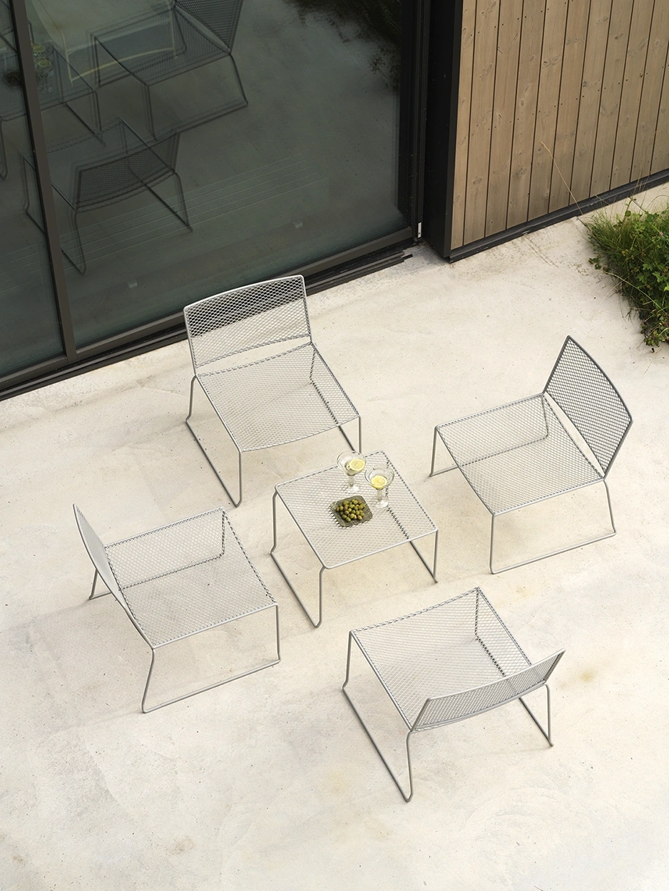 Haru soffbord 54×54 cm är ett stilrent och kompakt bord som förenar skandinavisk enkelhet med hållbar funktionalitet. Tillverkat i Småland av massivt stål, med en slitstark, dubbellackerad yta som står emot väder och vind. Den grafiska sträckmetallskivan ger ett modernt uttryck och gör bordet lika vackert som praktiskt för utomhusbruk.
