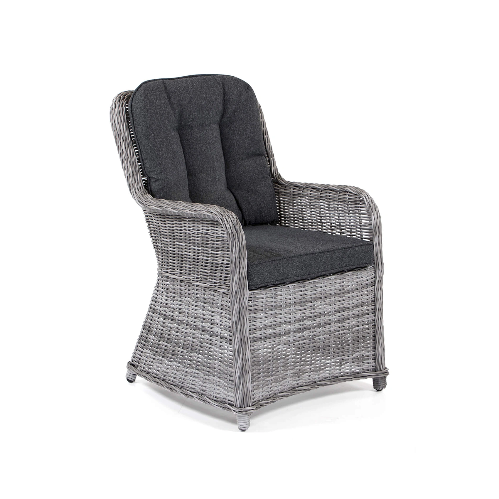 Hastings fåtölj i pärlgrå konstrotting på en kraftig aluminiumstomme. Sits- och ryggdyna i tålig olefinväv ingår.