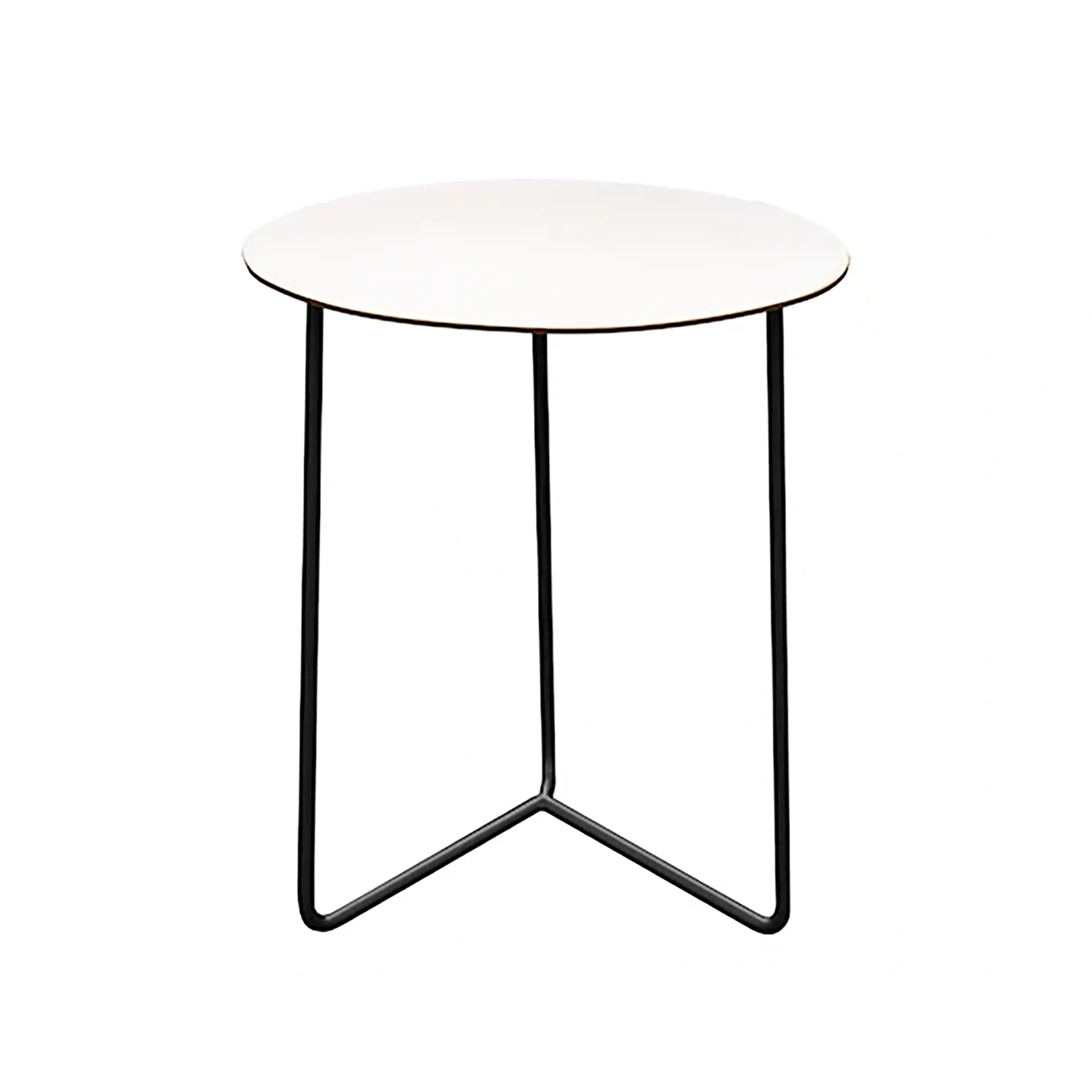 Ett elegant runt bord i High Tech-serien, där fjädrande fjäderstål kombineras med en tålig kompaktlaminatskiva i vitt. Det robusta materialvalet gör bordet motståndskraftigt mot slitage och väderpåverkan.