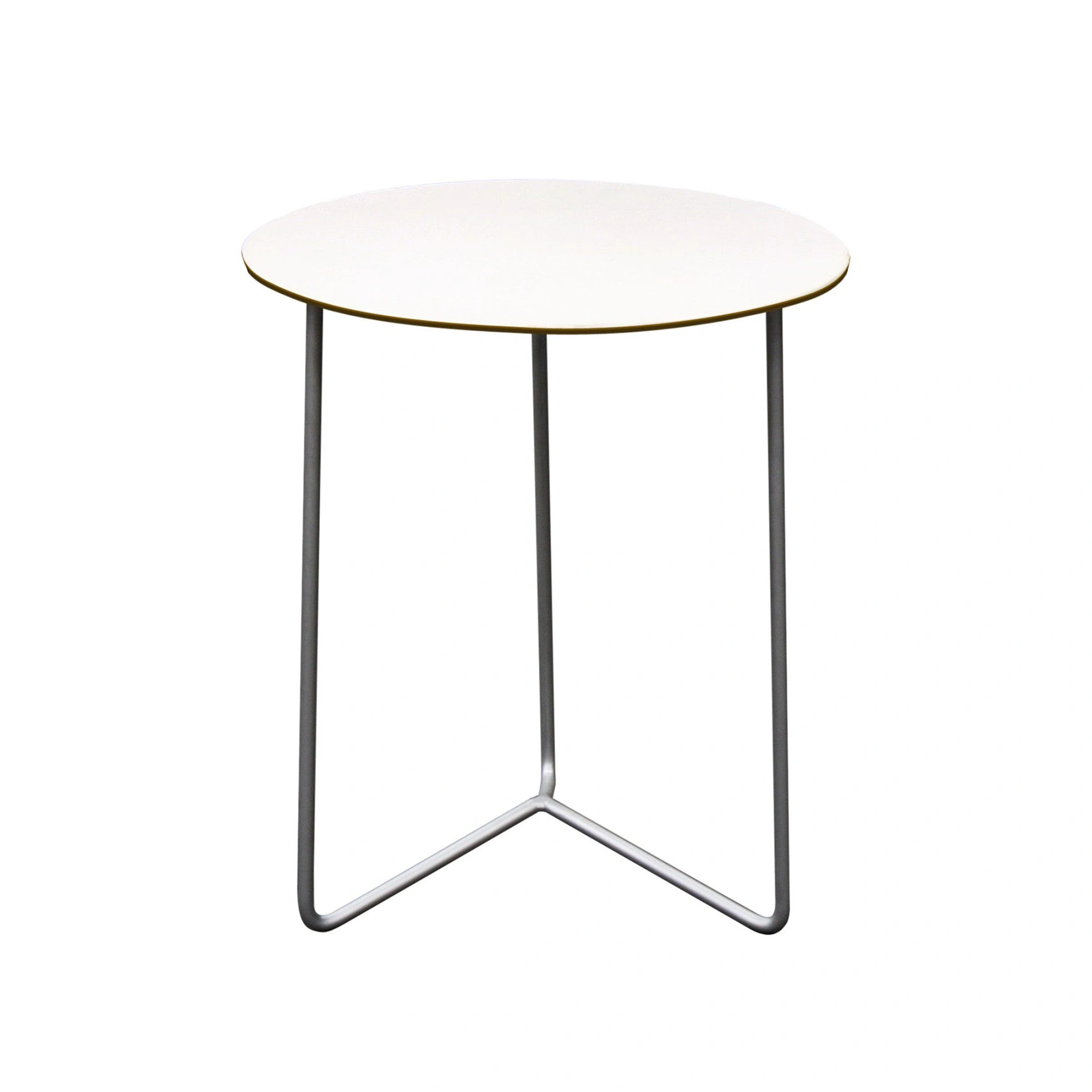 Nisse Strinnings stolklassiker har även ett tillhörande mindre runt bord. Gjord i massivt stål med skiva av tåligt kompaktlaminat som klarar alla väderlekar. Bordet har avtagbara ben.