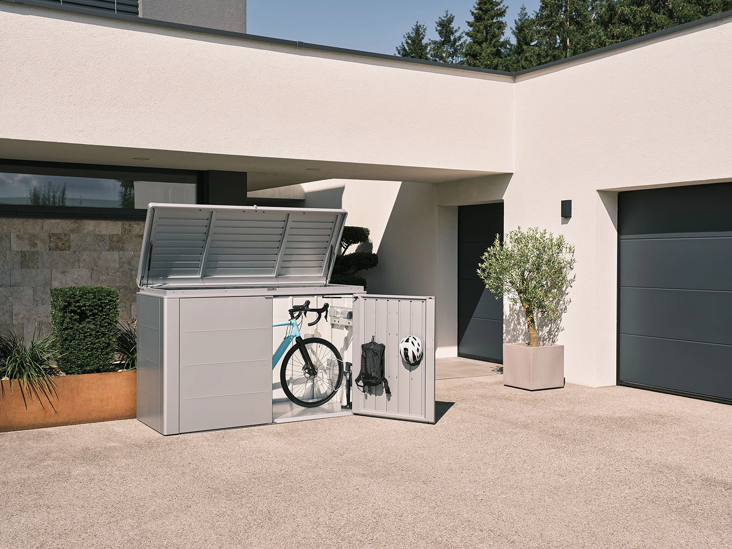 En underhållsfri, vattentät och snygg förvaringslösning för dina dynor, kuddar eller trädgårdsredskap. Användningsmöjligheterna är många med HighBoard förvaringsbod tack vare att den är försedd med både locköppning och dubbla dörrar. Du kan även använda HighBoard som ett komplement till ditt utekök, förvaring av dynor och kuddar, trädgårdsverktyg eller soptunnor.
