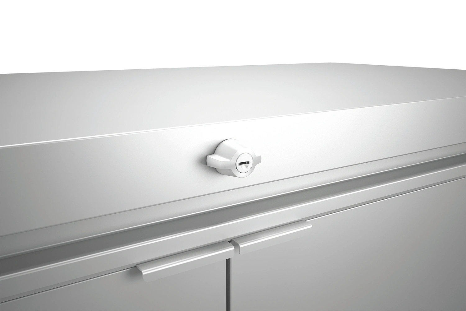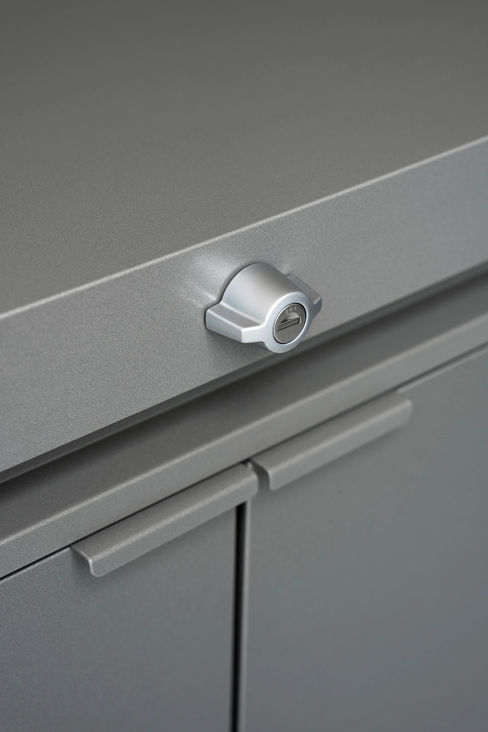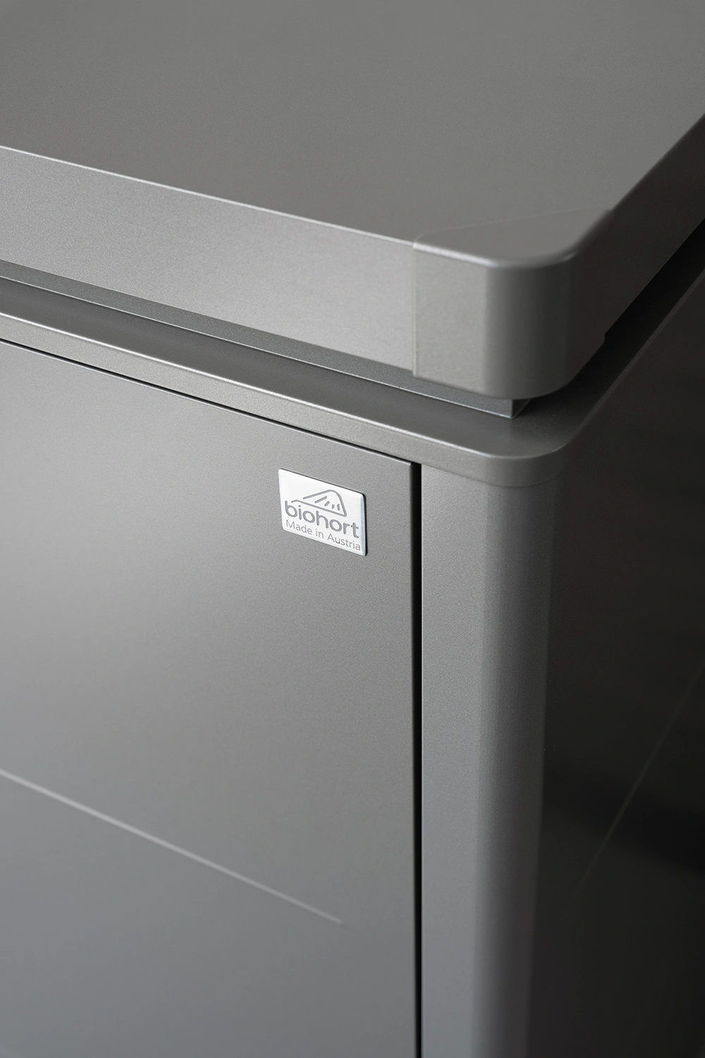 Förvaringsboxen är tillverkad i galvaniserat och lackerat stål och locket är av pulverbesprutat aluminium. Highboard förvaringsbox finns i två storlekar samt tre färger. Flera tillbehör finns att köpa till.