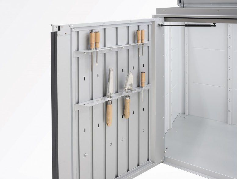 Komplettera din HighBoard förvaringsbox med en smidig verktygshållare som du fäster på insidan av dörren. Verktygshållaren är 51,5 cm lång och säljs endast i 2-pack, en förpackning innehåller två vektygslister.