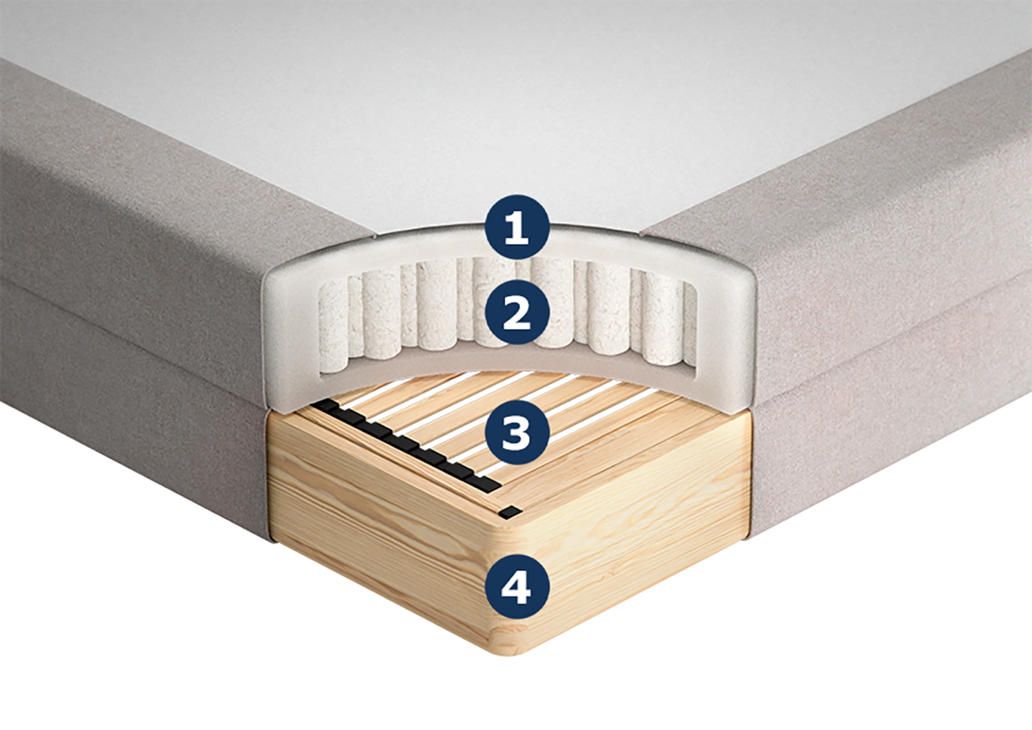 | Storlekar | 80×200, 90×200, 105×200, 120×200, 140×200, 160×200, 180×200, 180×210 cm |