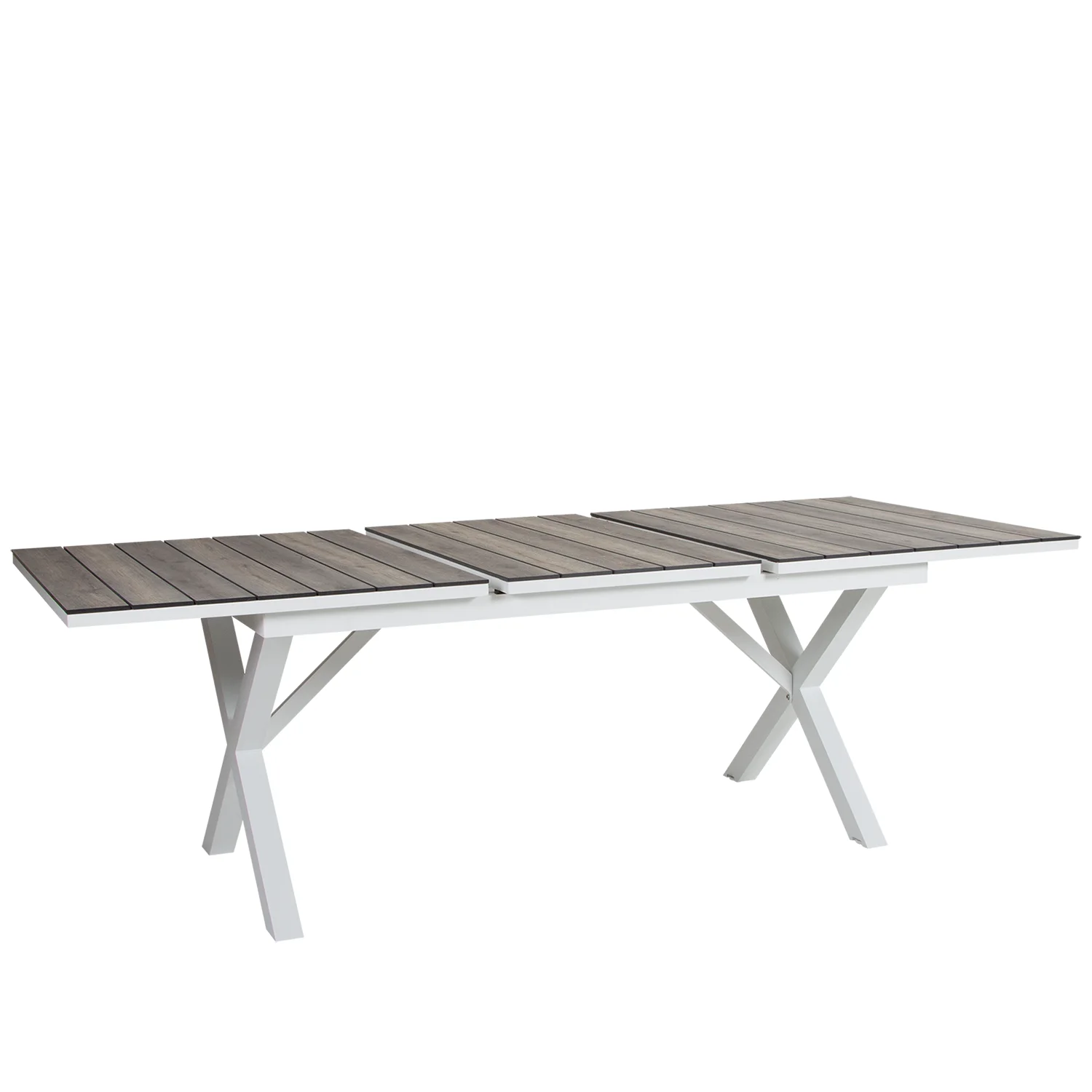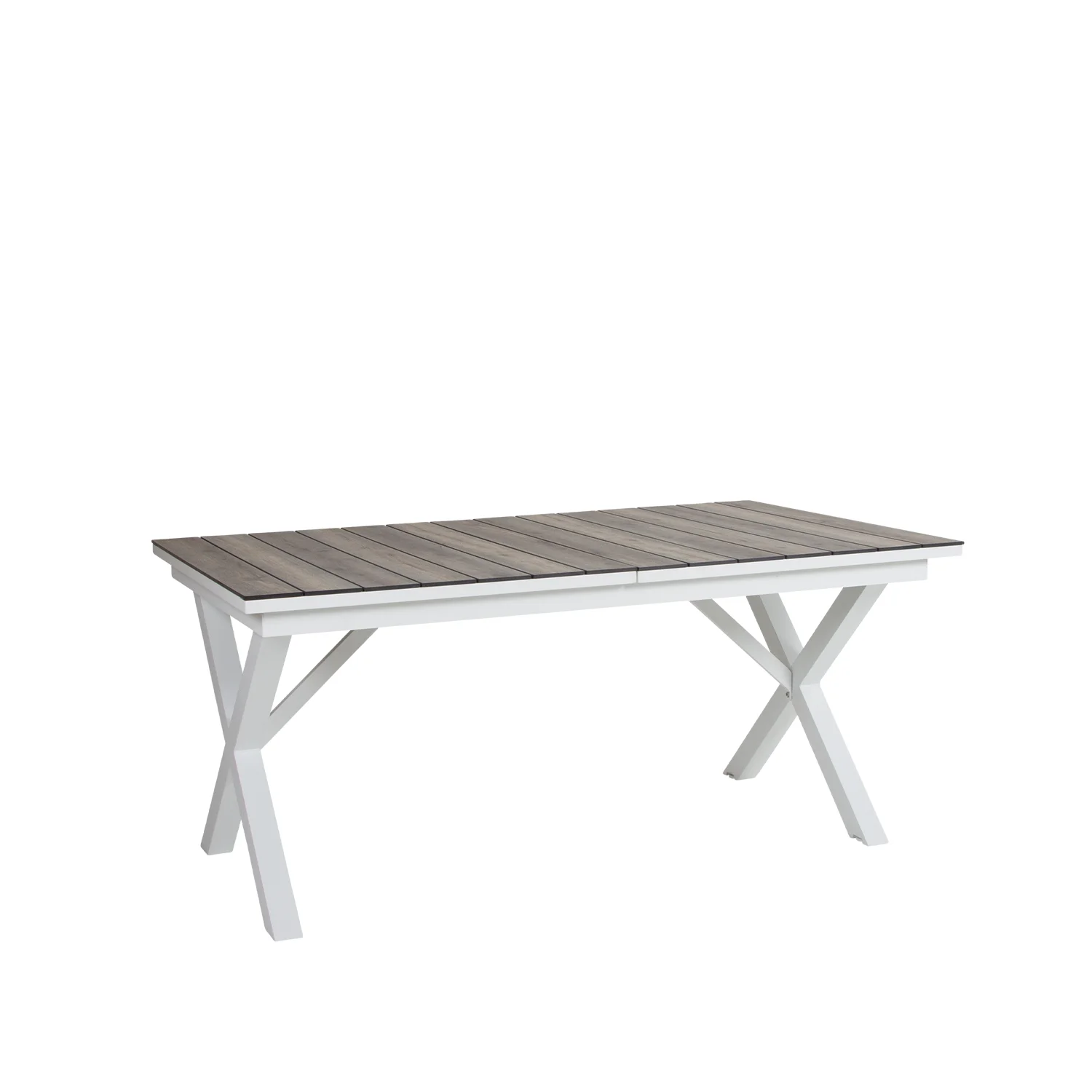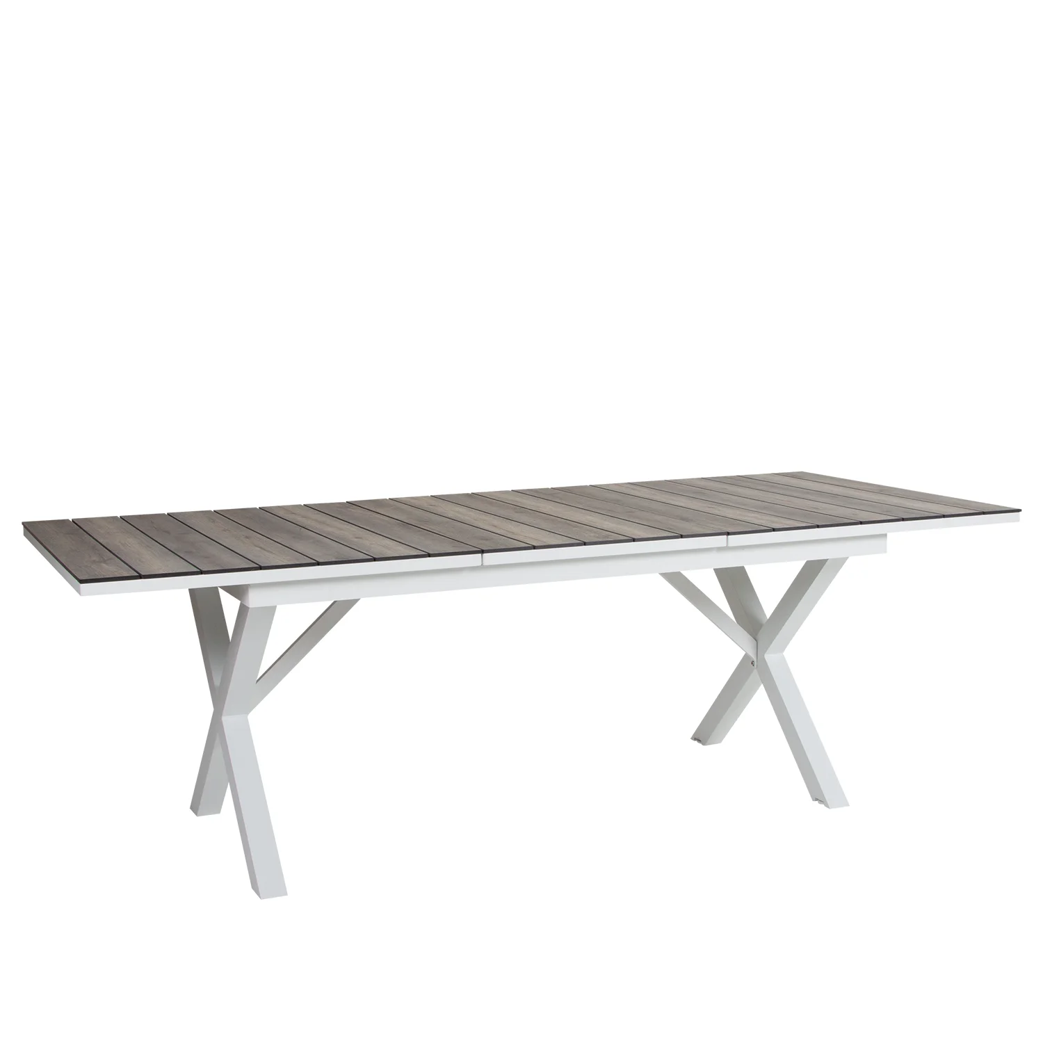 Underredet är i lackad aluminium och skivan kan antingen utgöras av tvärgående aluminiumribbor med präglat trämönster eller någon av våra trämönstrade laminatskivor. Hillmond finns också i en större variant, 238-297 cm, med plats för minst 12 personer.