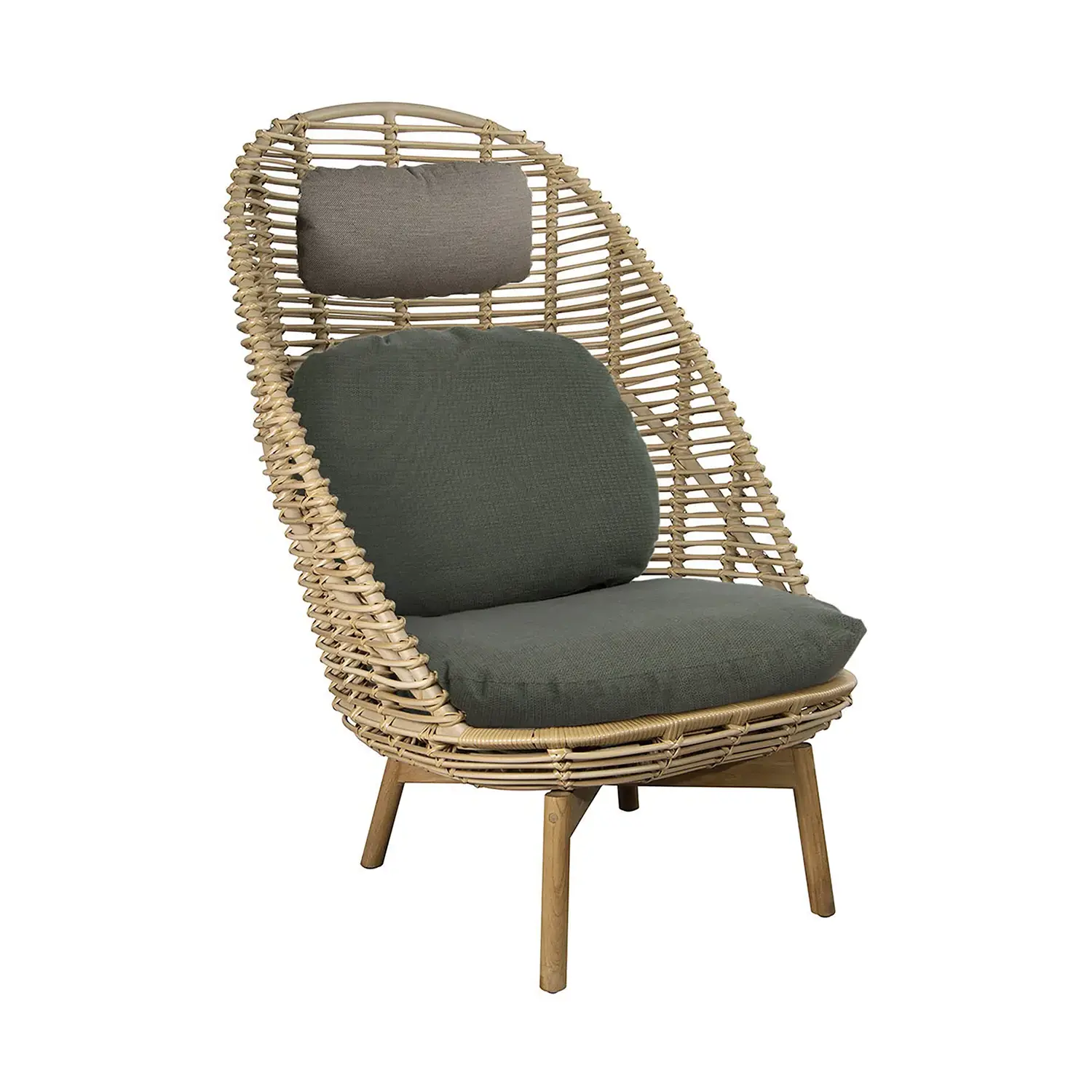 Stolen med hög rygg har designats av Foersom & Hiort-Lorenzen MDD. Den har en robust teakstomme, vilket ger designen ett varmt inslag, och stolen är handflätad i Cane-line Weave® med ett luftigt flätmönster. De mjuka dynorna har vårt smarta QuickDry & Airflow-system, som säkerställer att de är torra ca 1 timme efter en regnskur.