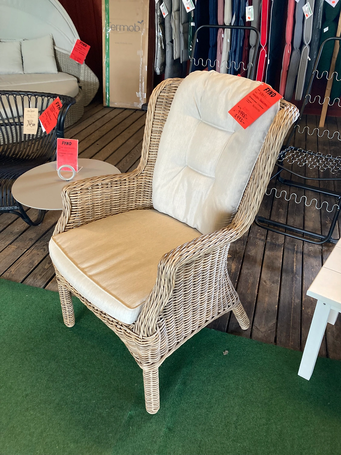 Jackson är en bekväm och lite nättare fåtölj. Flätad med en 5 mm tjock konstrottingfiber på aluminiumstomme. Går att använda som relaxfåtölj alternativt som matgruppsstol.