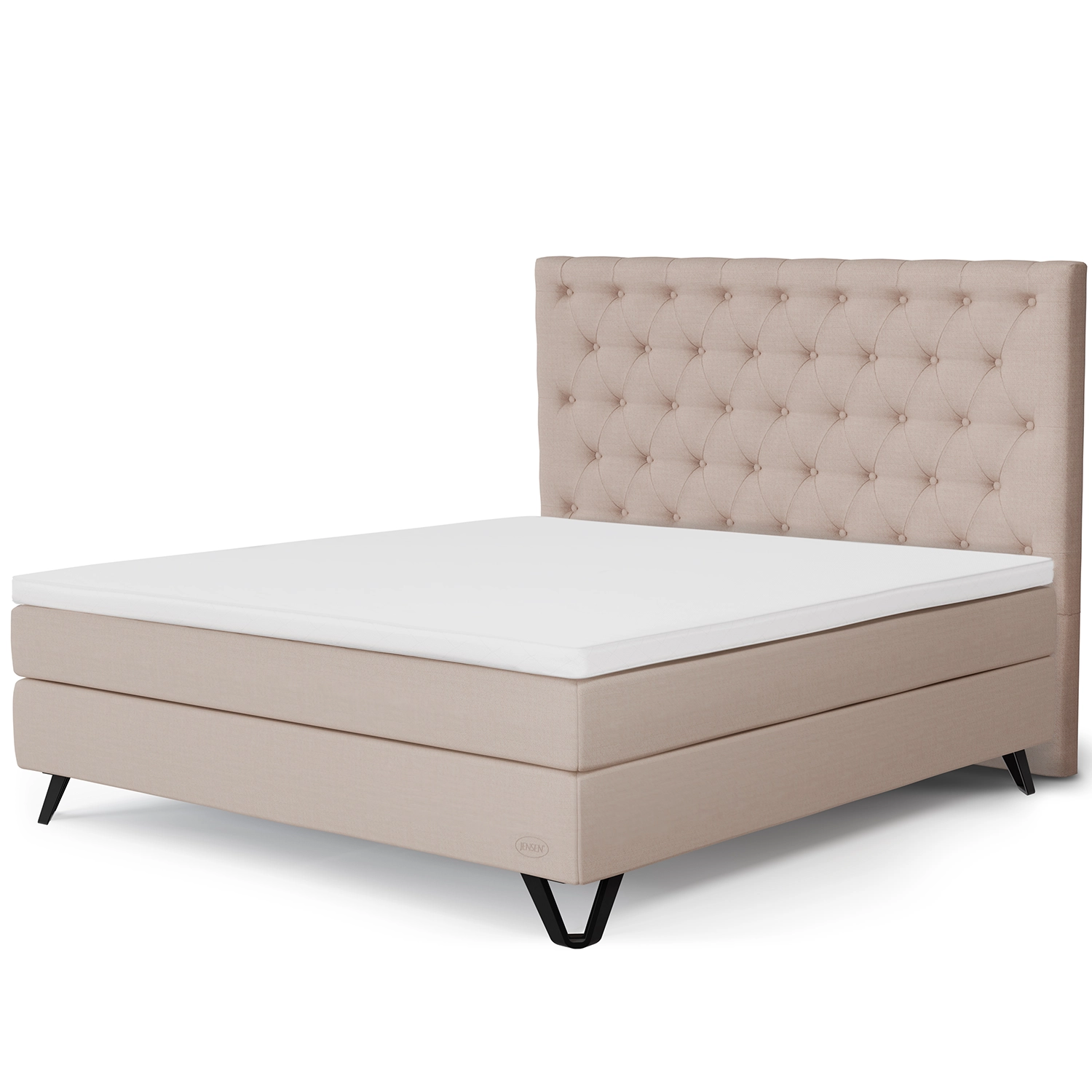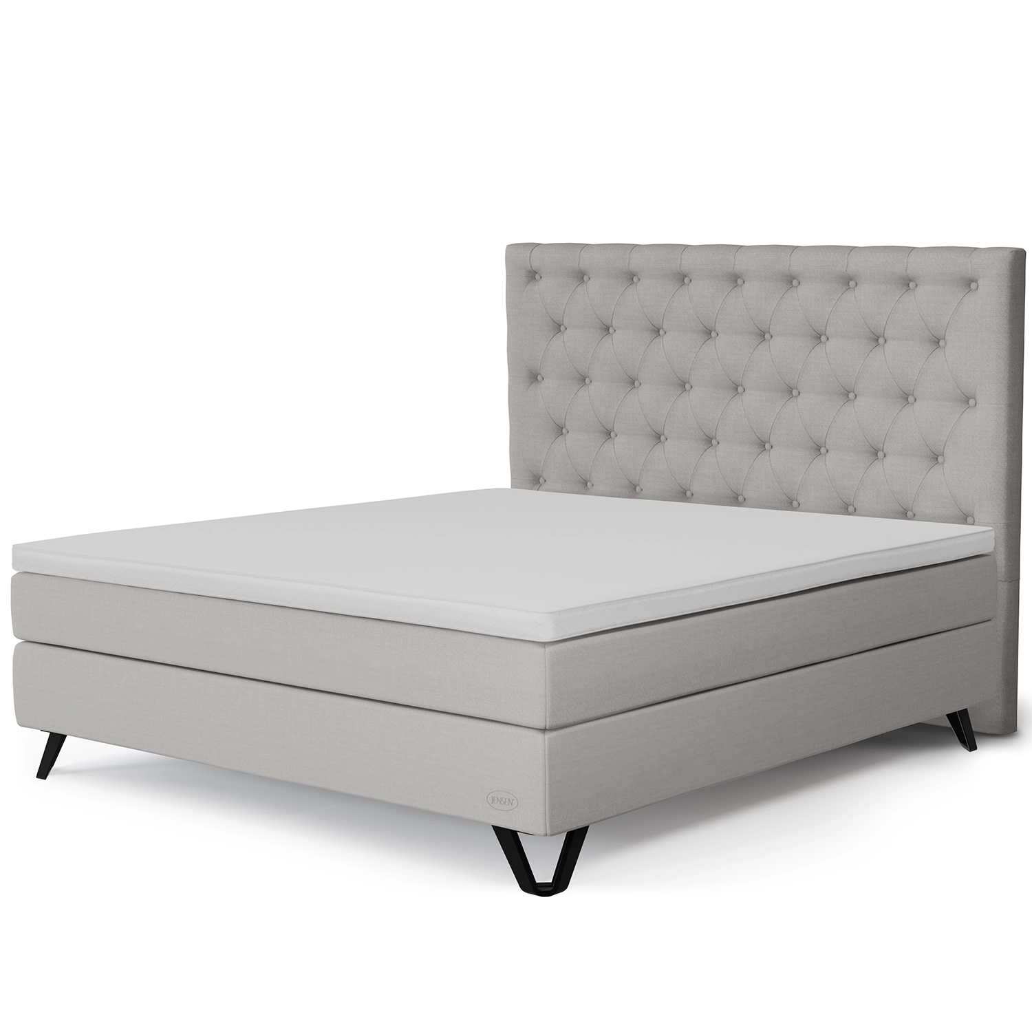 Jensens kontinentalsängar har en hel liggyta utan hårda kanter i mitten. Tekniken möjliggör ändå individuellt val av fasthetsgrad.