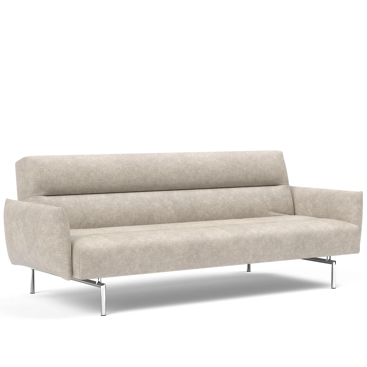 Jillis med armstöd är en elegant och funktionell bäddsoffa som kombinerar tidlös design med praktisk mångsidighet. Med sina slanka kromben, hög rygg och mjukt stoppade armstöd erbjuder Jillis både stil och komfort. Soffan är klädd i ett slitstarkt tyg och har en stoppning med No-Zag-fjädrar och högelastiskt skum, vilket ger jämn komfort för både sittande och sovande.