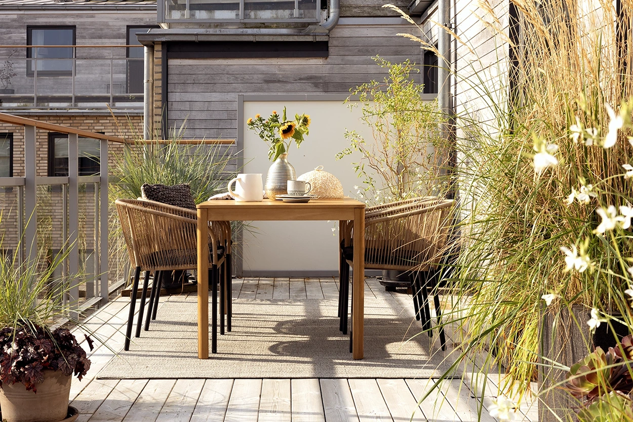 Joe är en klassisk matbordskollektion med ett tidlöst uttryck som passar i de flesta utemiljöer. Tillverkad i premiumteak som åldras vackert och ger naturlig hållbarhet. De lätt rundade, avsmalnande benen och de tvärgående ribborna ger bordsskivan rytm och balans. Enkel. Stabil. Joe.