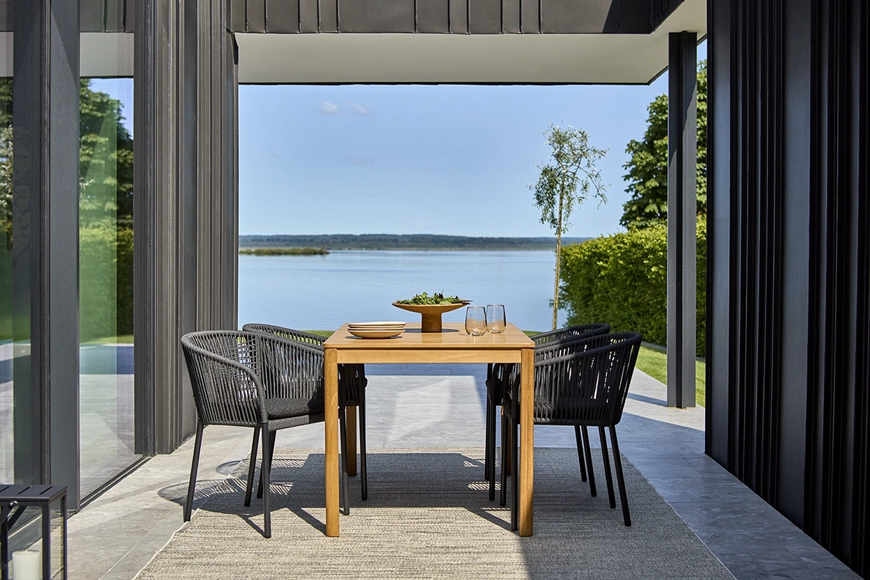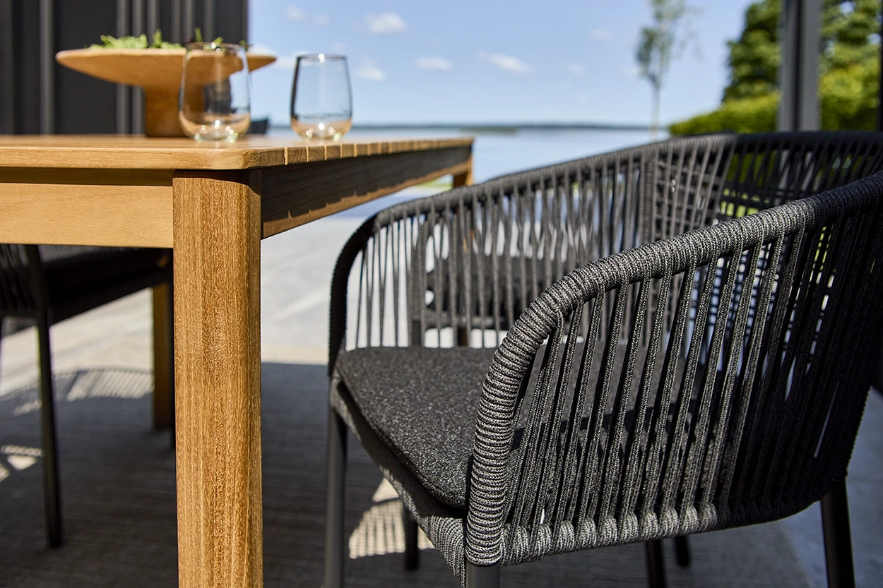 Joe är en klassisk matbordskollektion med ett tidlöst uttryck som passar i de flesta utemiljöer. Tillverkad i premiumteak som åldras vackert och ger naturlig hållbarhet. De lätt rundade, avsmalnande benen och de tvärgående ribborna ger bordsskivan rytm och balans. Enkel. Stabil. Joe.