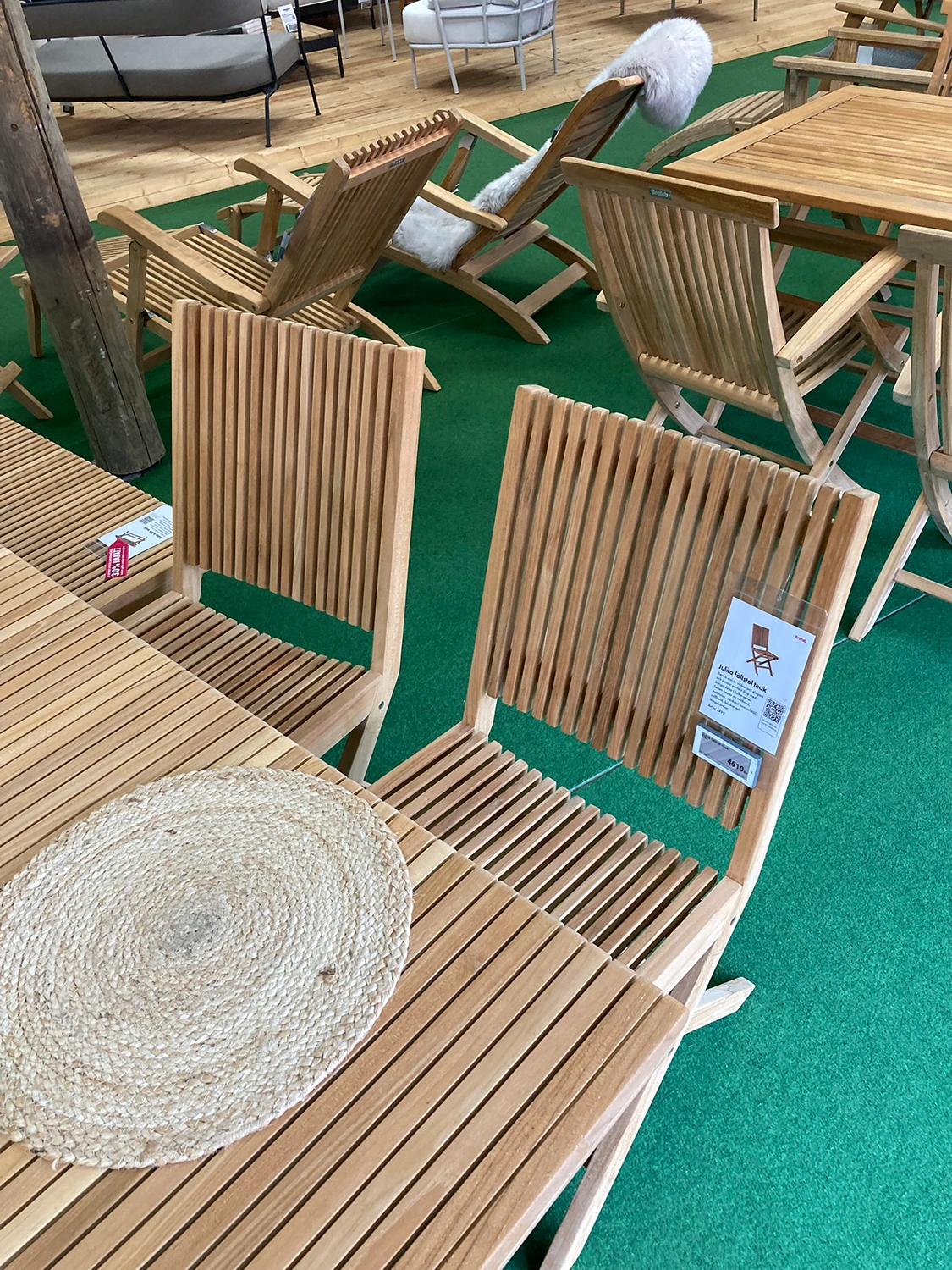 En vacker premiumgrupp med tvärgående teakribbor som genomgående inslag – Julita tar de raka linjerna från den skandinaviska designen med sig och skapar en skön matplats som sticker ut med sin stil samtidigt som den smälter in i omgivningarna.