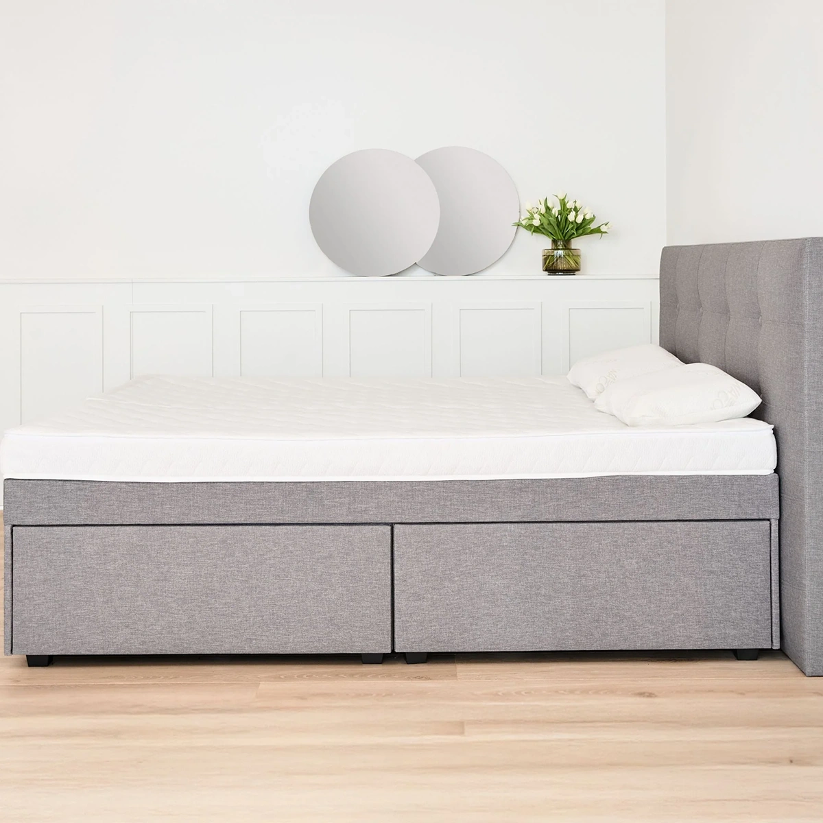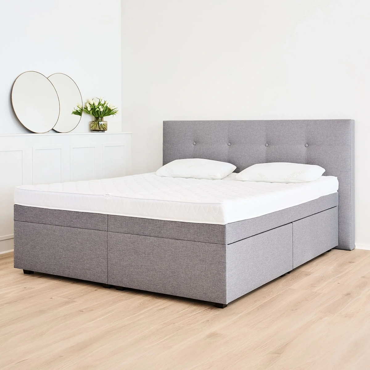1600g fiber ger en nästan helt stilla liggyta. Rörelser bromsas effektivt, vilket gör att madrassen snabbt återgår till ett stabilt läge. Du får fortfarande den ergonomiska komforten från vattnet, men med en känsla som påminner mer om en traditionell madrass. Den här modellen passar dig som vill ha lugn och stabil sömn, utan att kompromissa med tryckavlastning.