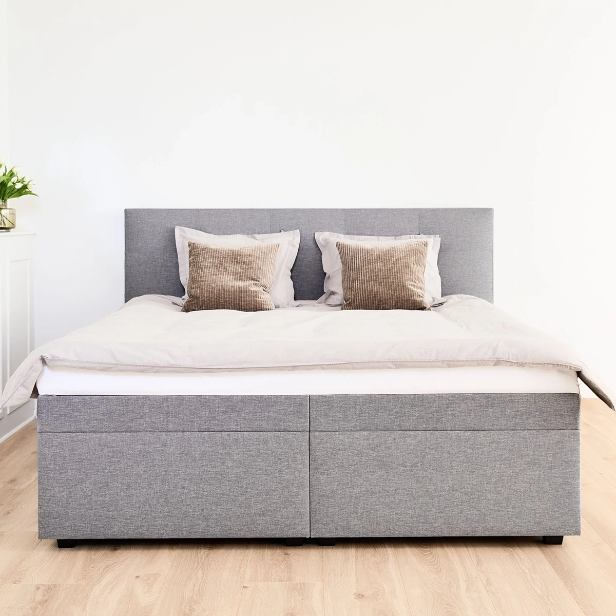 Aquabox Kent hör till den nya generationen softside-sängar som blir både högre och mer tilltalande i utseende och utan avkall på den unika komfort som softside-sängar erbjuder. De nedre delarna av de mjuka sidorna är klädda i samma tyg som sängen i övrigt. De linjer i fotgavel och sida som denna konstruktion ger upphov till ger lite mer liv åt sängens utseende. Sängens höjd från golv upp till bäddmadrassen är 65 cm.