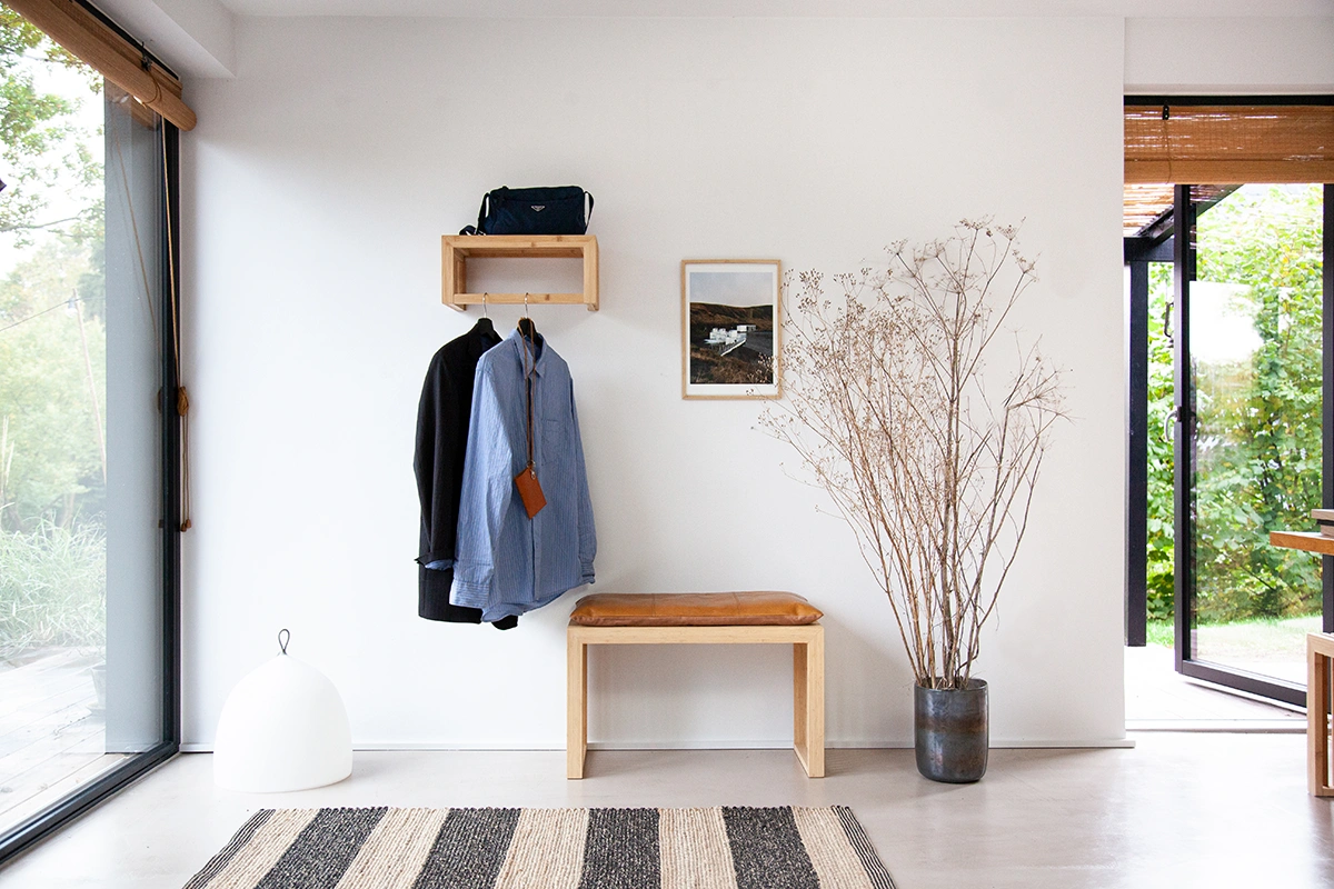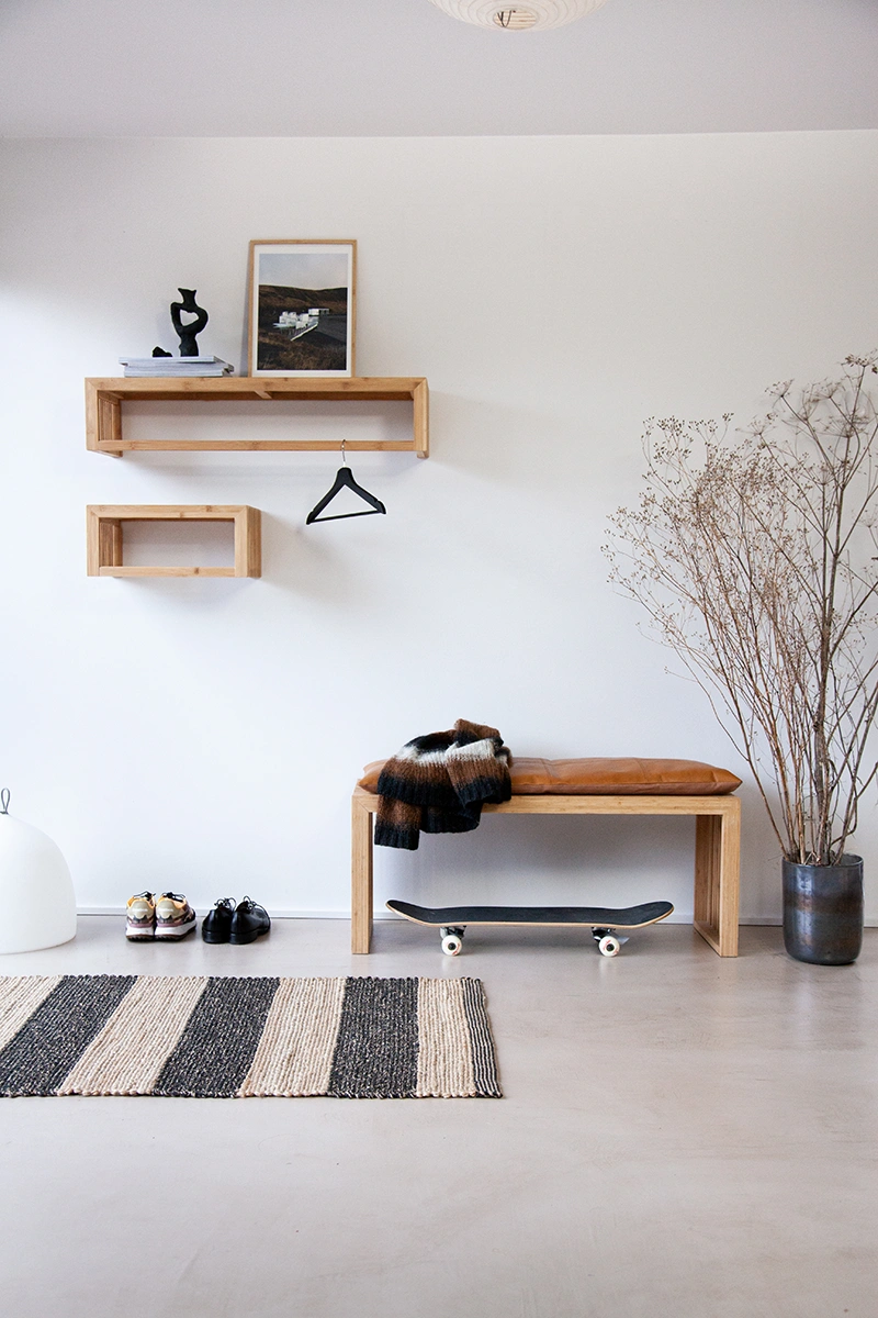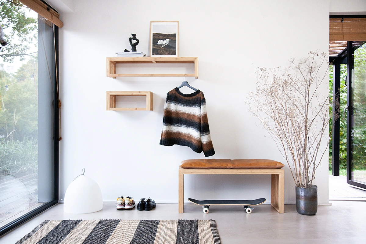 Wardrobe Shelf kan monteras på väggen som en stilren vägghylla eller placeras på golvet som en praktisk skohylla. Den kompakta storleken gör den idealisk även i mindre utrymmen.