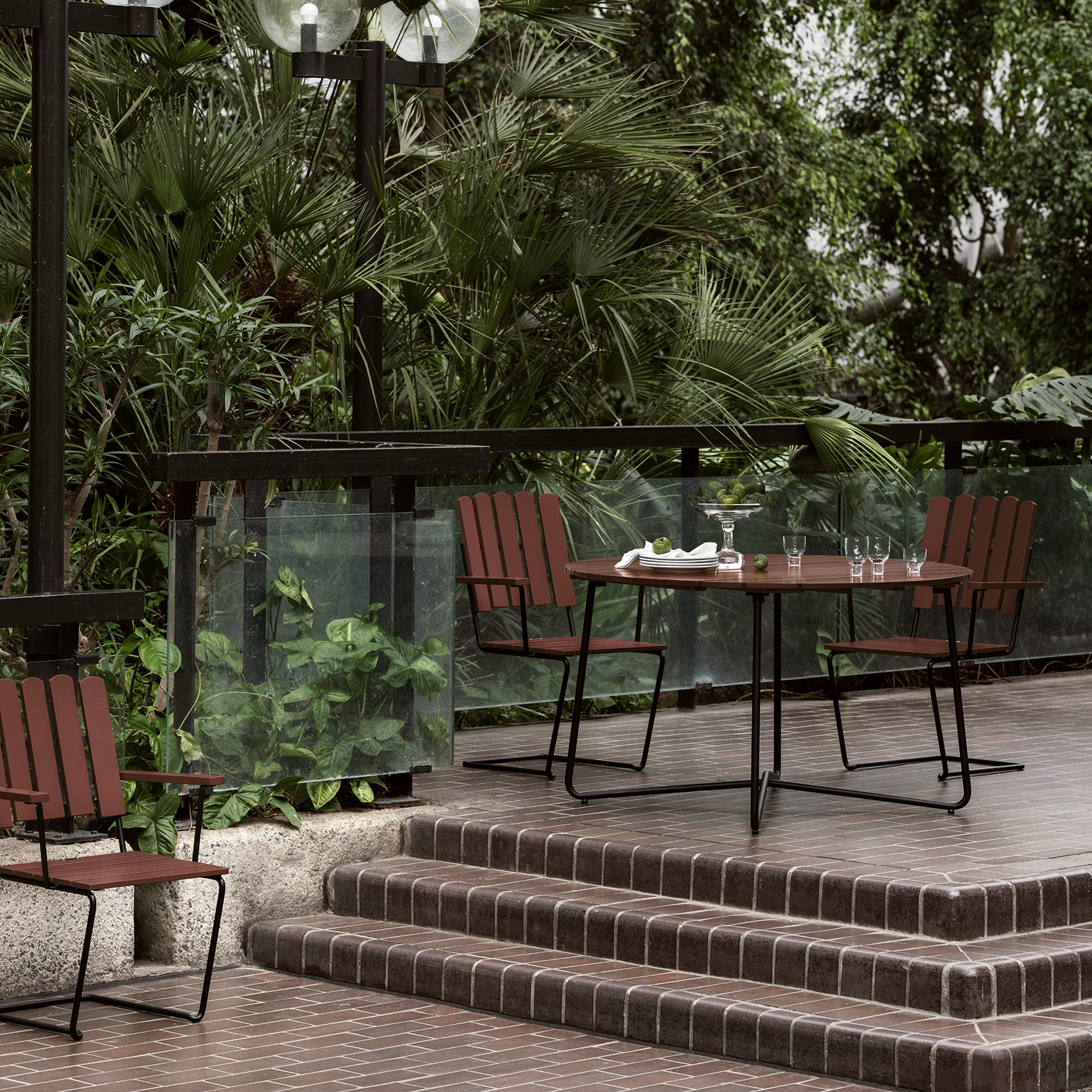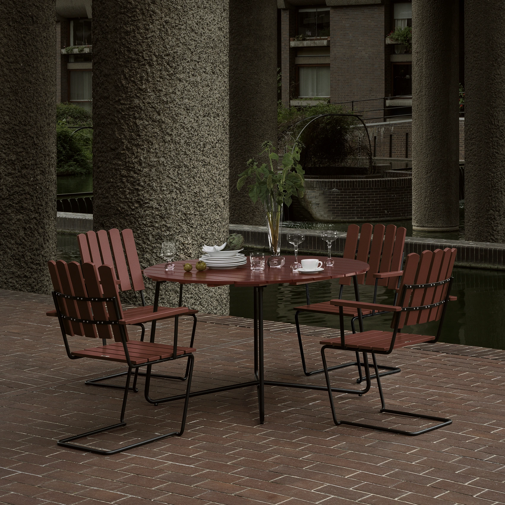 Klassikergrupp mörkröd ek / varmförzinkat - 4 A2 stolar, B31 170 bord