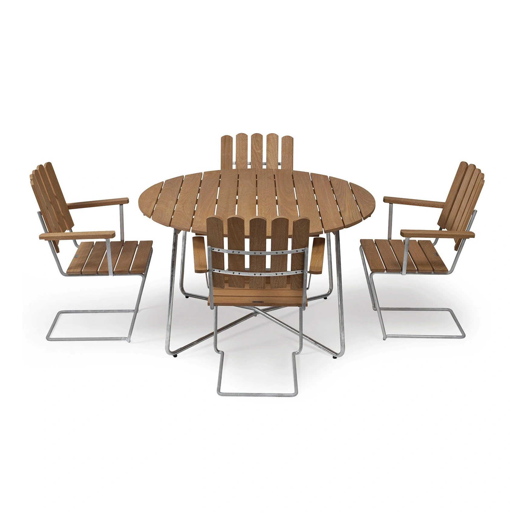 Klassikergrupp ljusgrön ek / varmförzinkat - 4 A2 stolar, B31 170 bord