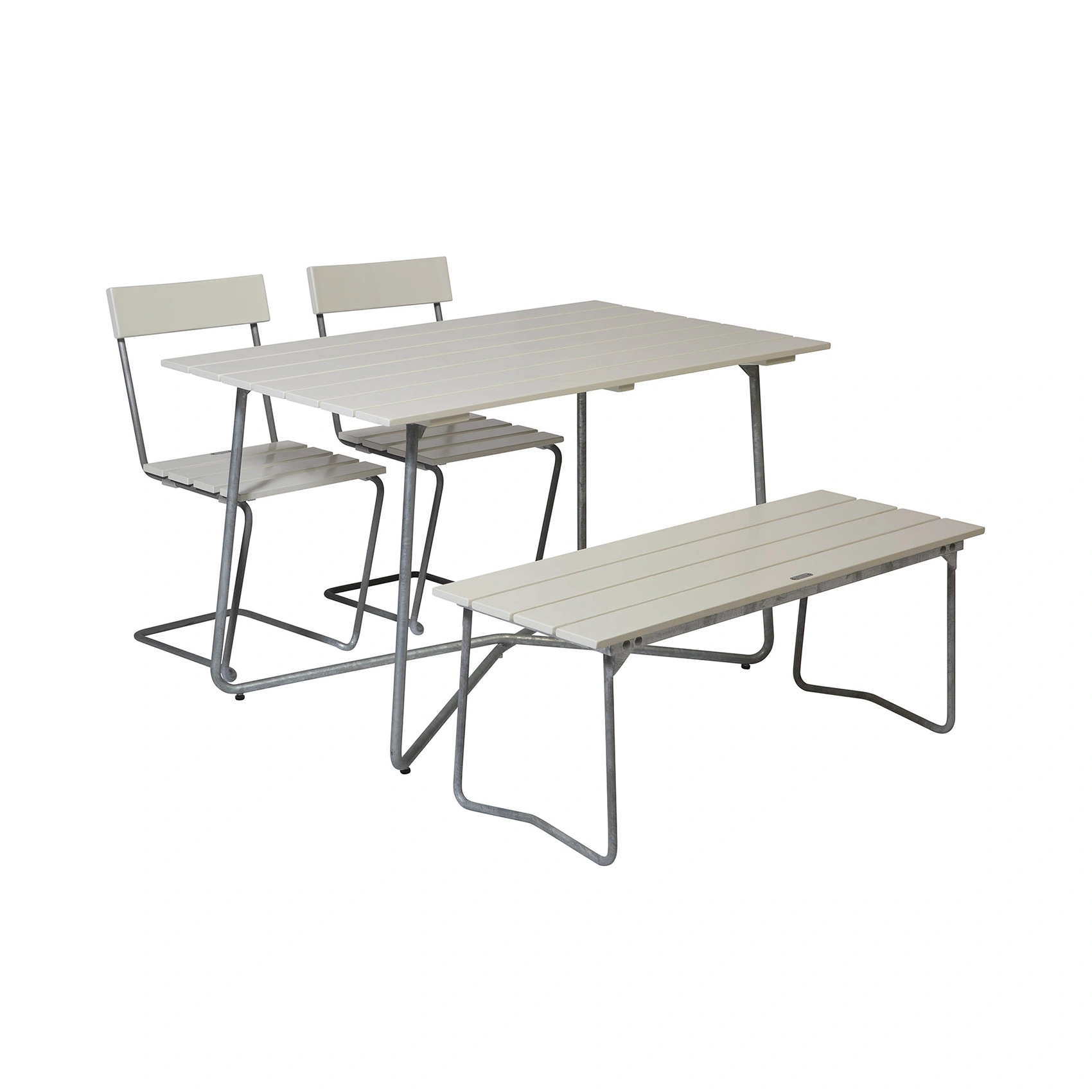 Klassikergrupp vit ek / varmförzinkat - 6 A2 stolar, B31 230 cm