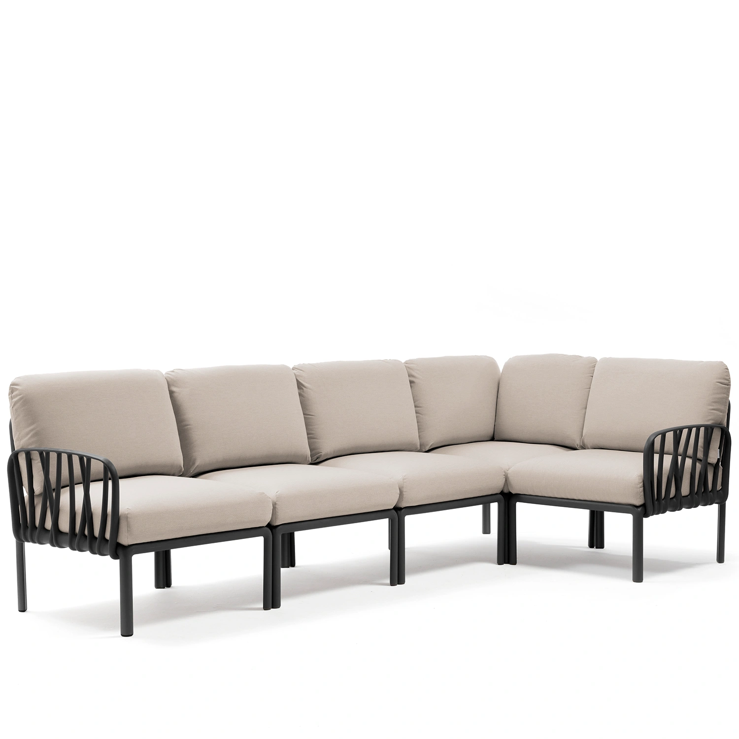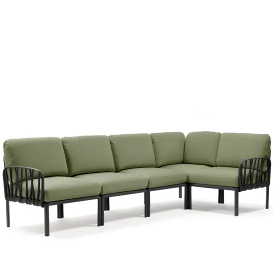 Komodo är en modulär hörnsoffa som fått sin inspiration från trädets grenar. Designad för sällskaplighet i det fria – hemma, på en bar eller restaurang.