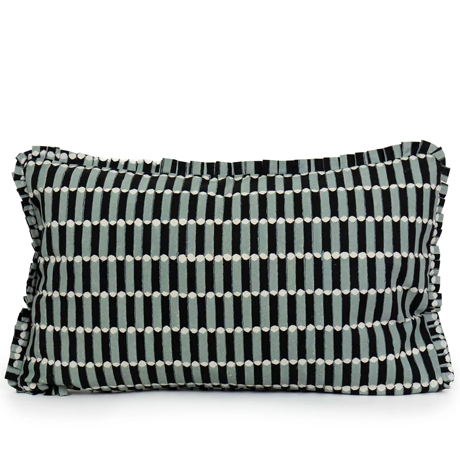 Kuddfodralet Tivoli har samma fina handtryckta mönster på båda sidorna. Mönstret är tryckt med ett handsnidat träblock på bomull.