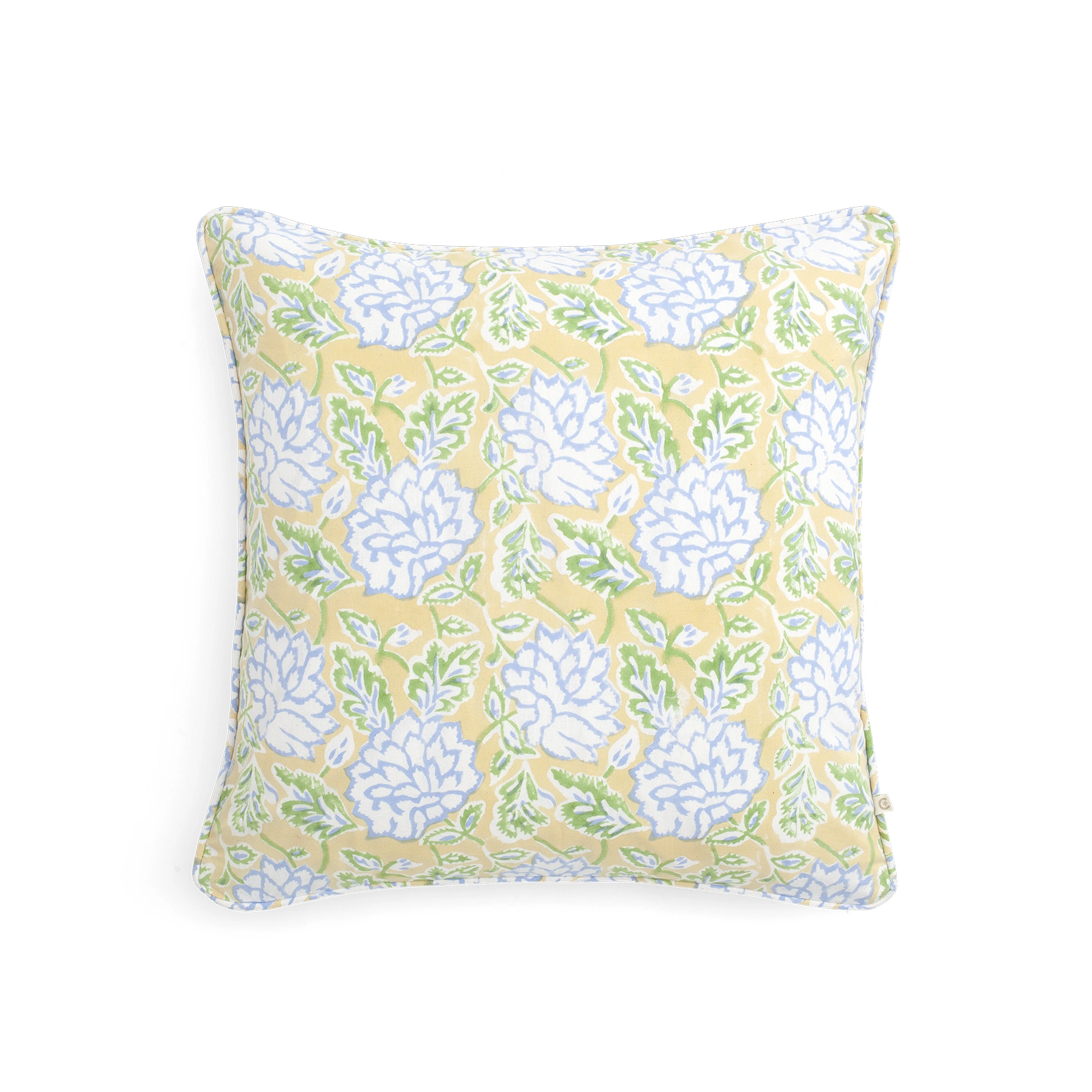 Vår Dahlia-kudde är tillverkad med expertis i åtanke och utstrålar en lekfull atmosfär med livfulla färger och intrikata detaljer. Den här kudden är minutiöst designad för att prioritera både kvalitet och estetik och är tillverkad av ekologisk bomull av högsta kvalitet. Det tidlösa blommiga mönstret Dahlia är noggrant handtryckt med den uråldriga metoden för träsnittstryck.