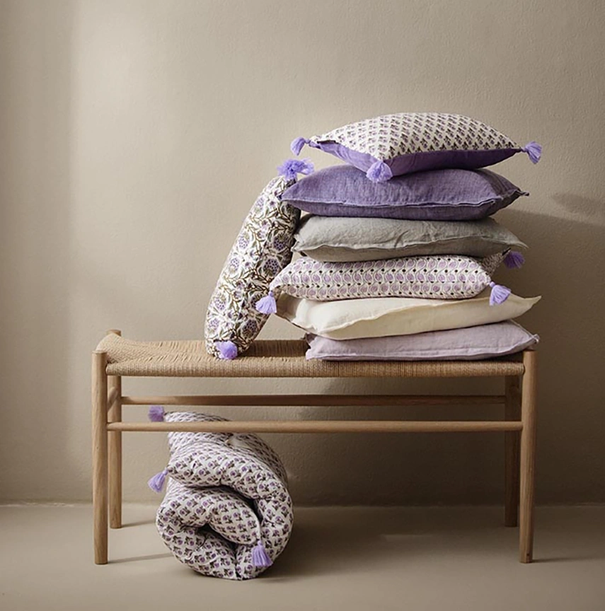 Bungalows stentvättade linnefodral är ett bra komplement till deras mönstrade kuddfodral.