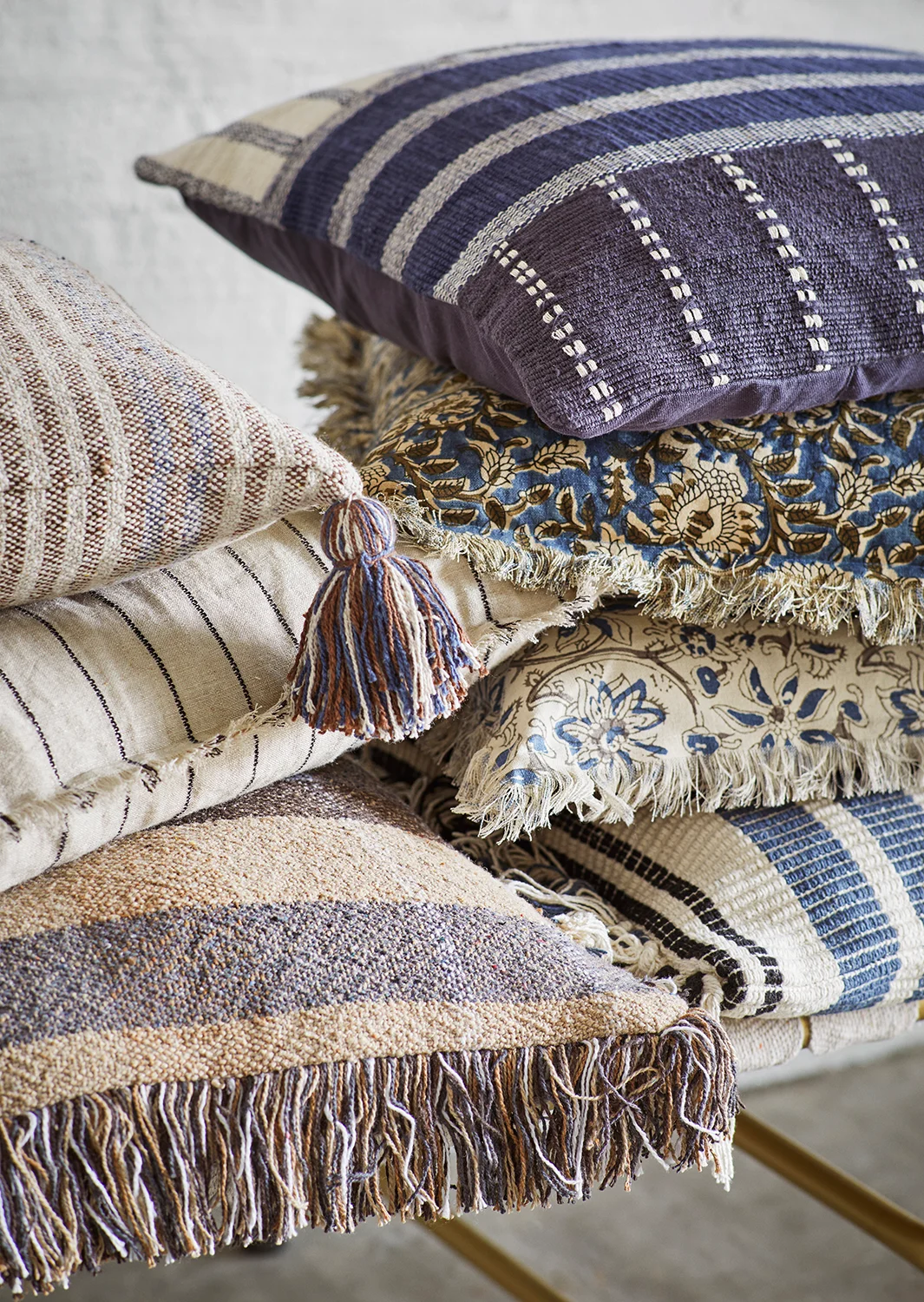 Färgglatt kuddfodral inspirerat av indiska blocktryck. Tryck på bomullstyg, med fransig kant. Kuddfodralet säljs exklusive innerkudde.
