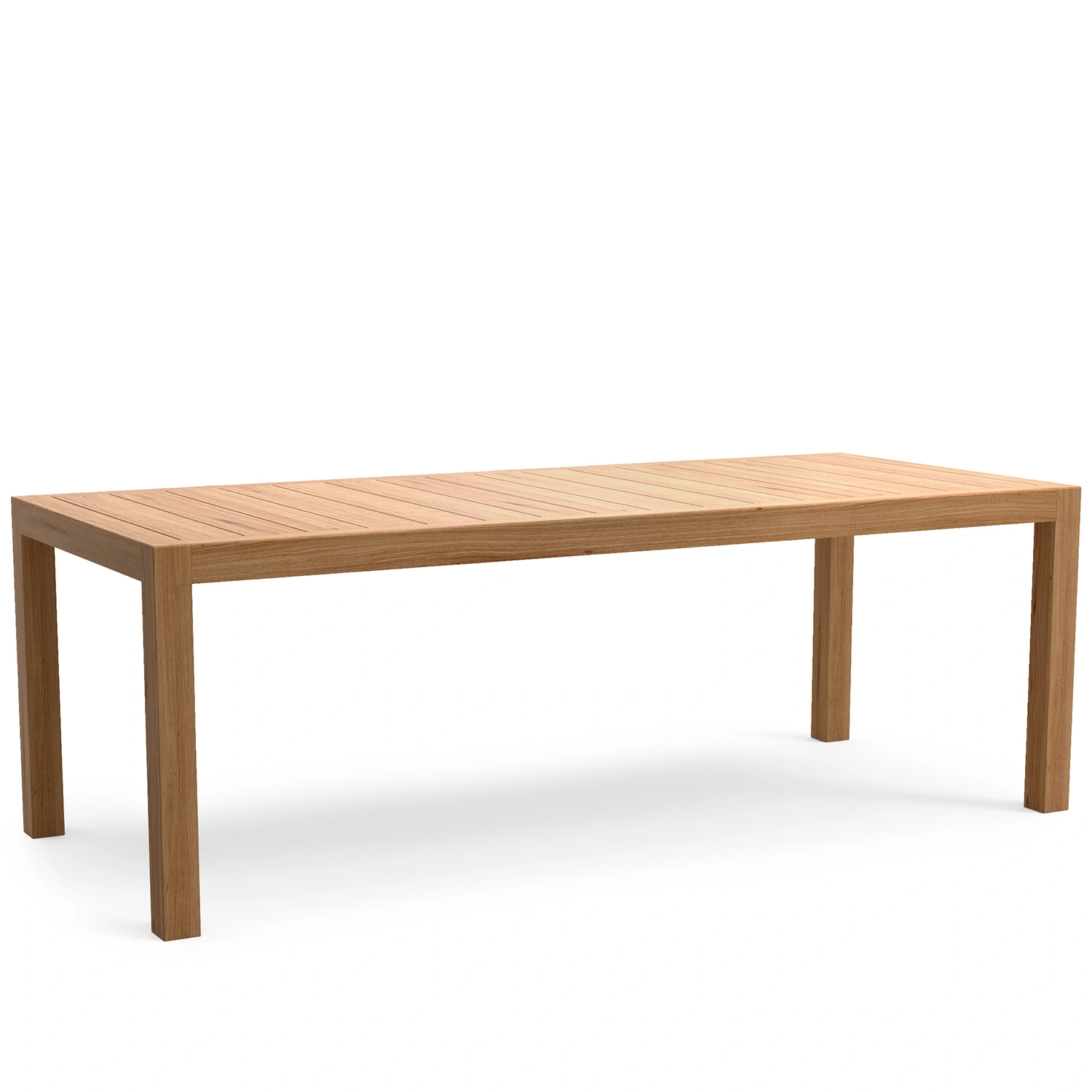 Laknäs matbord är skapat för livet utomhus – från stora terrasser och trädgårdar till bryggor och uterum. Bordet är tillverkat i massiv teak med en ren, minimalistisk form som förenar naturlig värme med diskret styrka. Konstruktionen är robust och anpassad för att klara skiftande väder, året runt, utan att kompromissa med estetik eller funktion. Teaken kan oljas för att behålla sin gyllene ton eller lämnas obehandlad för att utveckla en vacker silvergrå patina över tid.