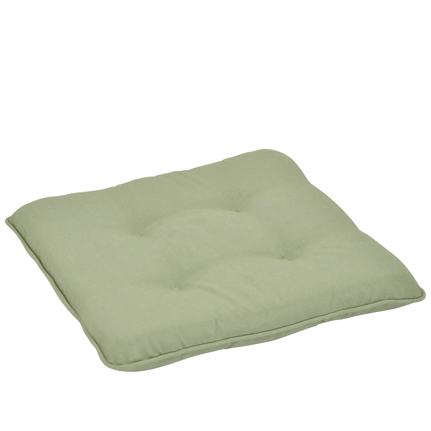 Laos visas här i enfärgat tyg i Dralon i färgen Oliv. Dralondynor är mycket tåliga mot solblekning och behåller därför sin färg utan att blekas under lång tid. Dynan har en kederlist runt om. Stoppningen är i polyeter och fibervadd med fyra stycken indrag (ej knappar).