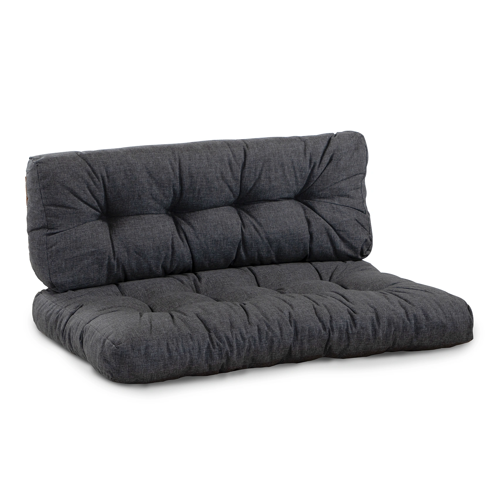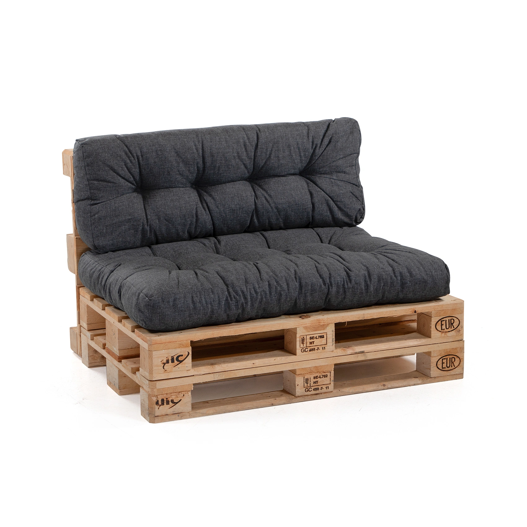Dynor från Atleve som passar till soffor byggda av lastpallar. Visas här i 240 g mörkgrå olefin.