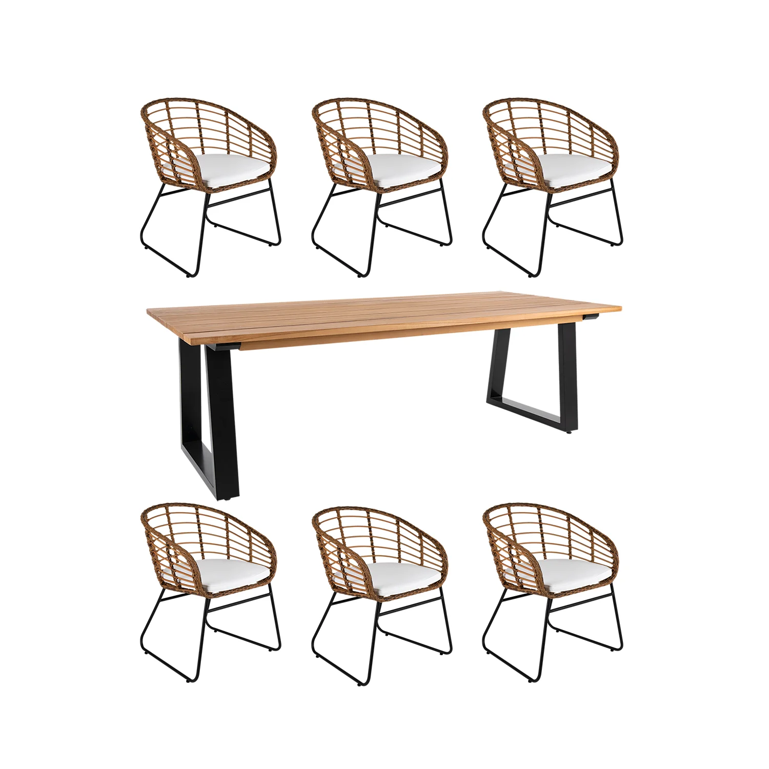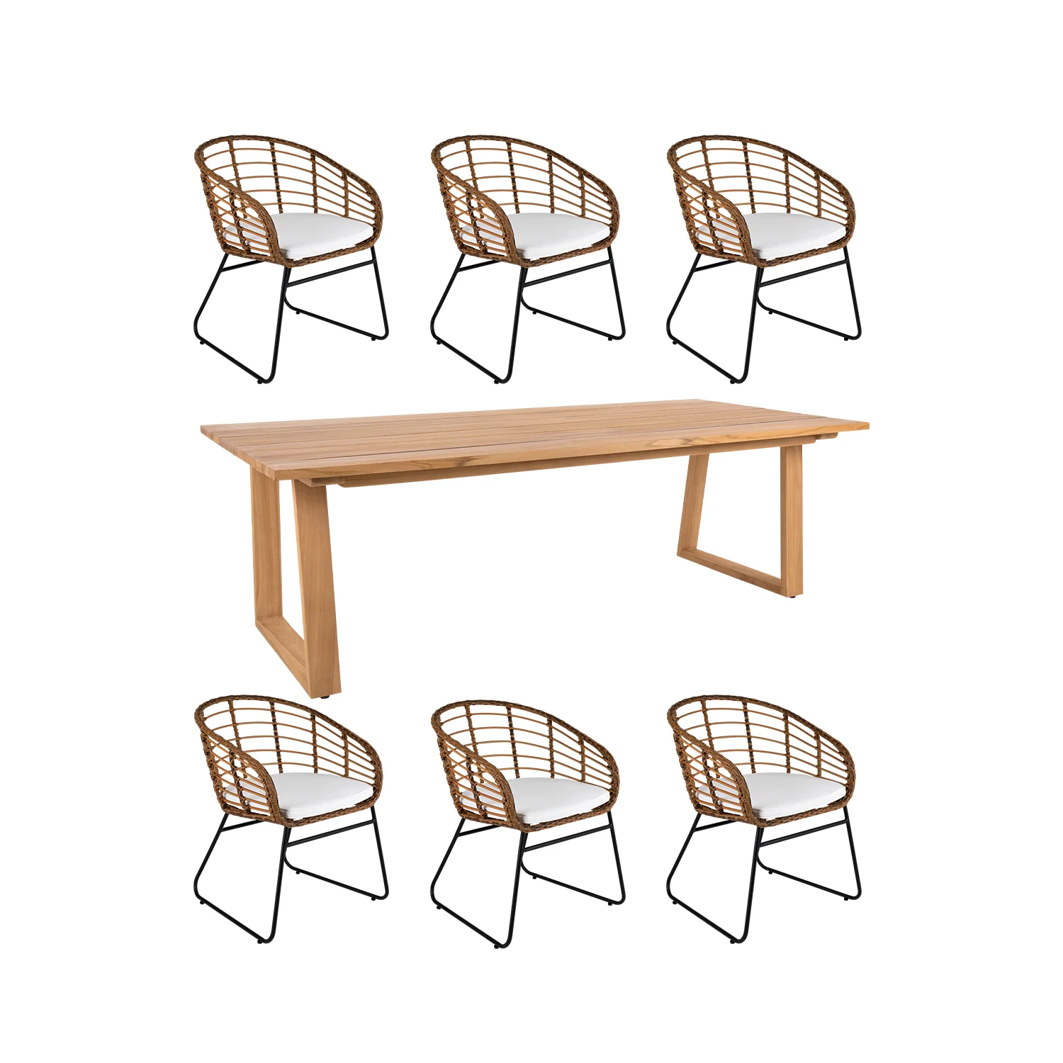 Laurion är ett vackert modernt matbord präglat av en bordstopp i teak med unik design och ett skickligt hantverk. Lättplacerat och generöst. Covelo karmstol har slitstark grov konstrotting med ett mycket naturtroget utseende. Bekväm sittkomfort och höga karmar skapar en extra ombonad känsla.