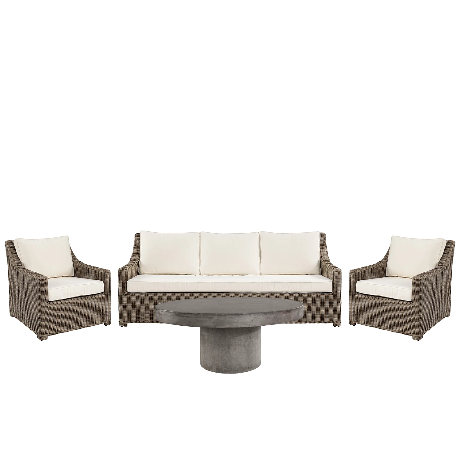 Layton soffa och Layton fåtölj från Artwood. Tillverkade i väderbeständig vintagegrå konstrotting med en stomme av aluminium. Dynor med avtagbar klädsel i 100% polyester i offwhite ingår, kemtvätt rekommenderas. Dynstoppning av en polyeterkärna med svept fiber och riven polyeter. Det finns möjlighet att beställa andra dynöverdrag i valfritt tyg från Artwoods tygkollektion, alternativt eget inskickat tyg.