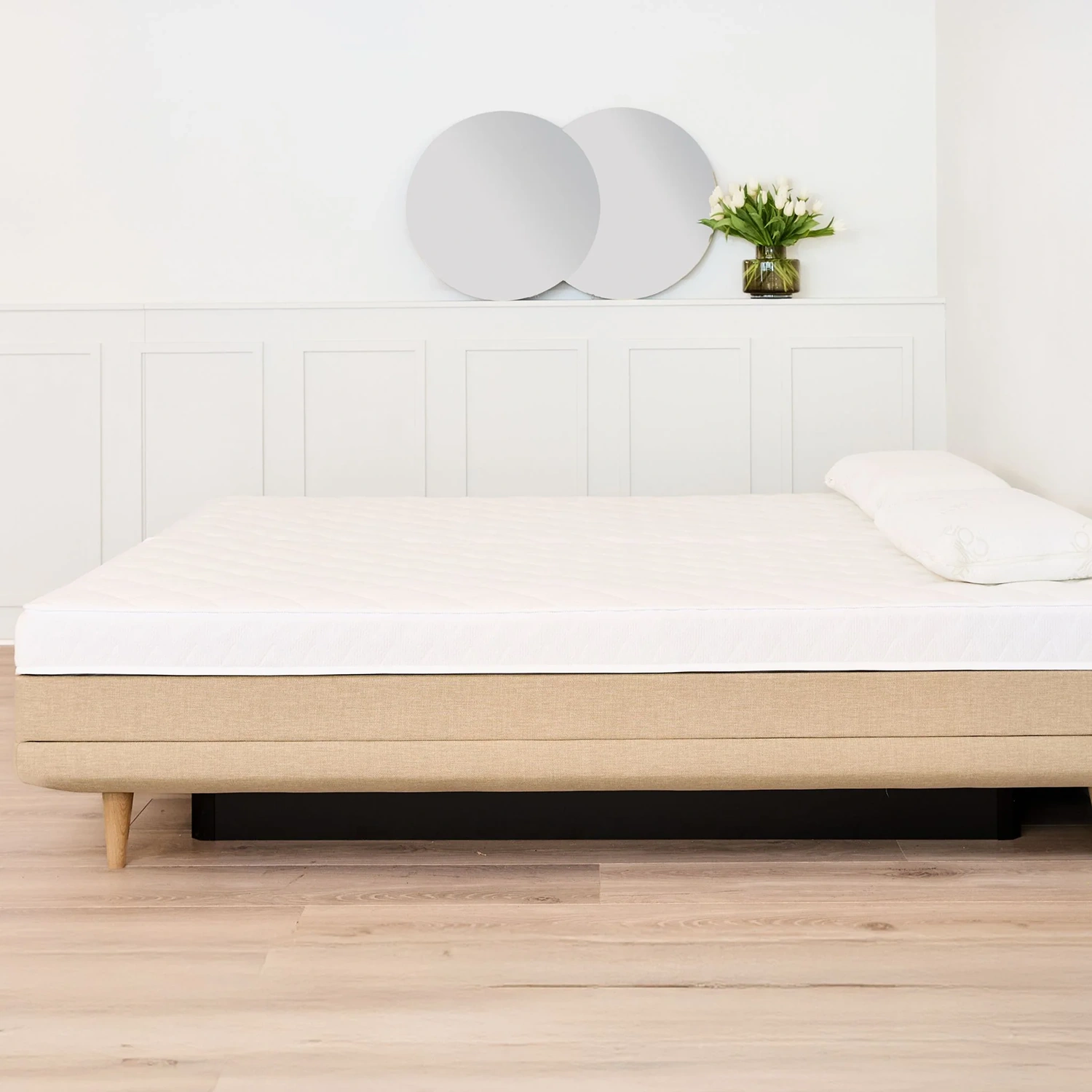 1600g fiber ger en nästan helt stilla liggyta. Rörelser bromsas effektivt, vilket gör att madrassen snabbt återgår till ett stabilt läge. Du får fortfarande den ergonomiska komforten från vattnet, men med en känsla som påminner mer om en traditionell madrass. Den här modellen passar dig som vill ha lugn och stabil sömn, utan att kompromissa med tryckavlastning.