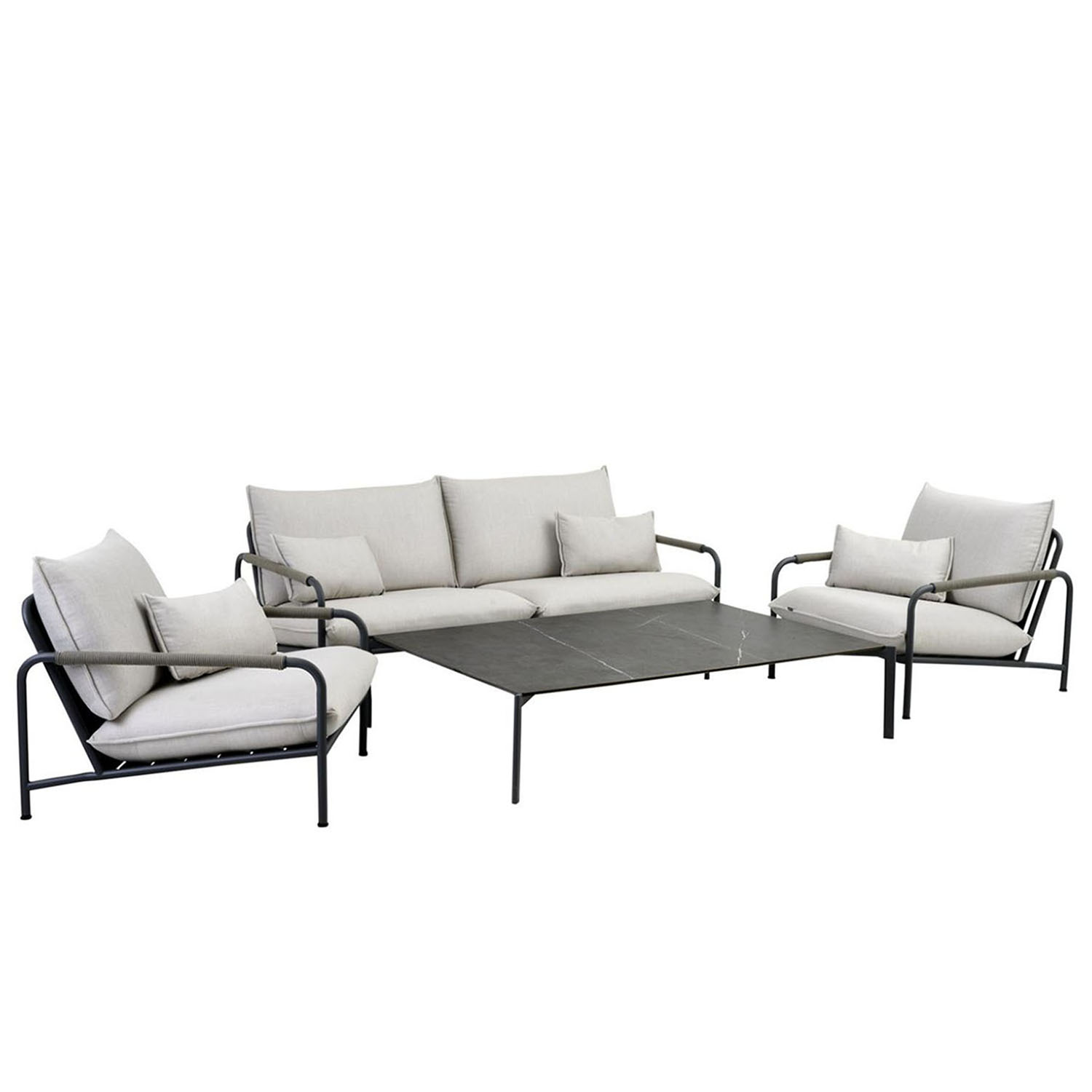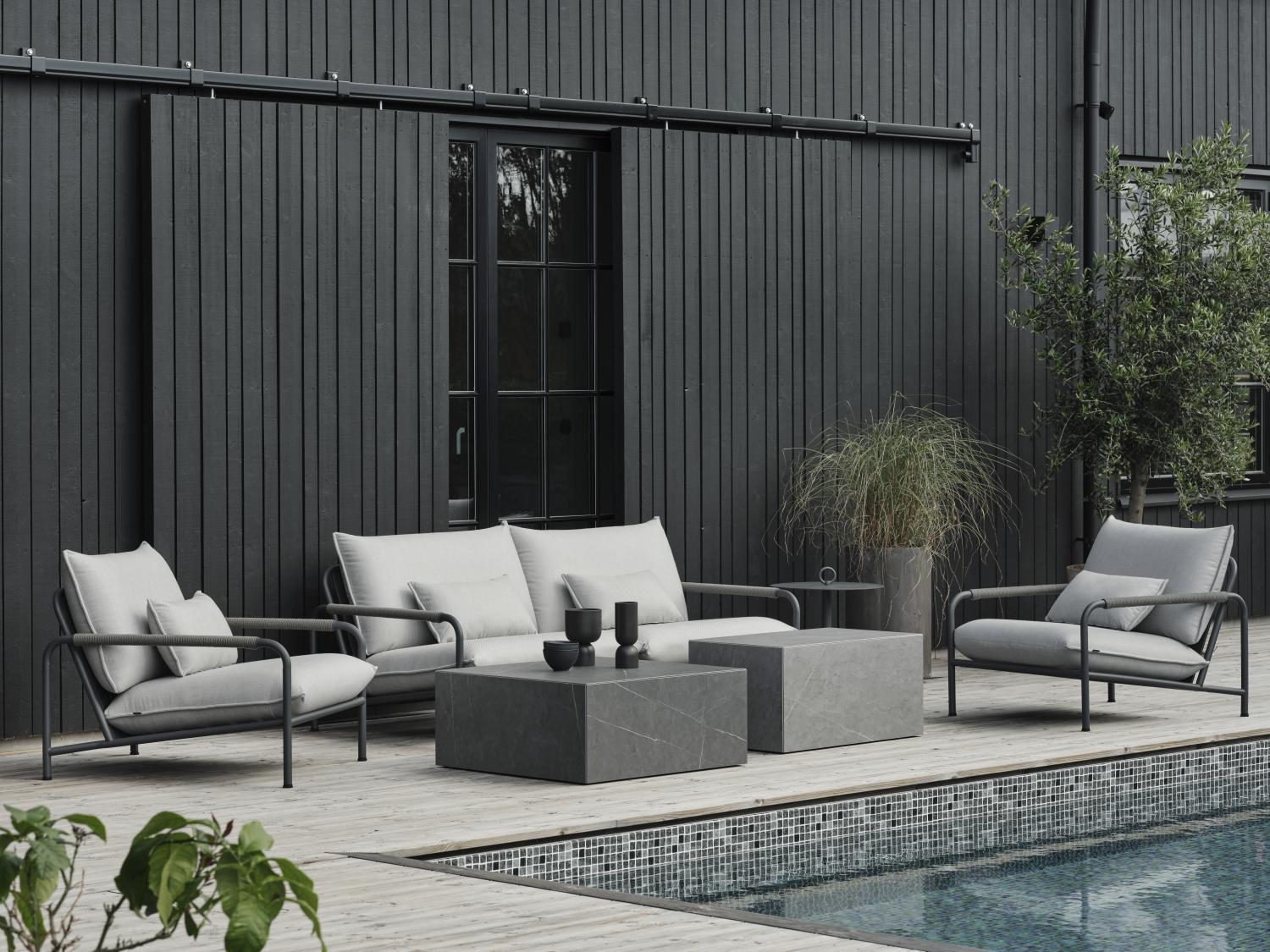 Genomtänkt design och högsta möjliga komfort möts i denna framtida klassiker till loungesoffa, med plats för två eller tre. Kommer i en modern dämpad grön nyans, eller klassiskt Antracitgrå som lätt kombineras med olika soffbord, kuddar och plädar för en uteplats du aldrig vill lämna.