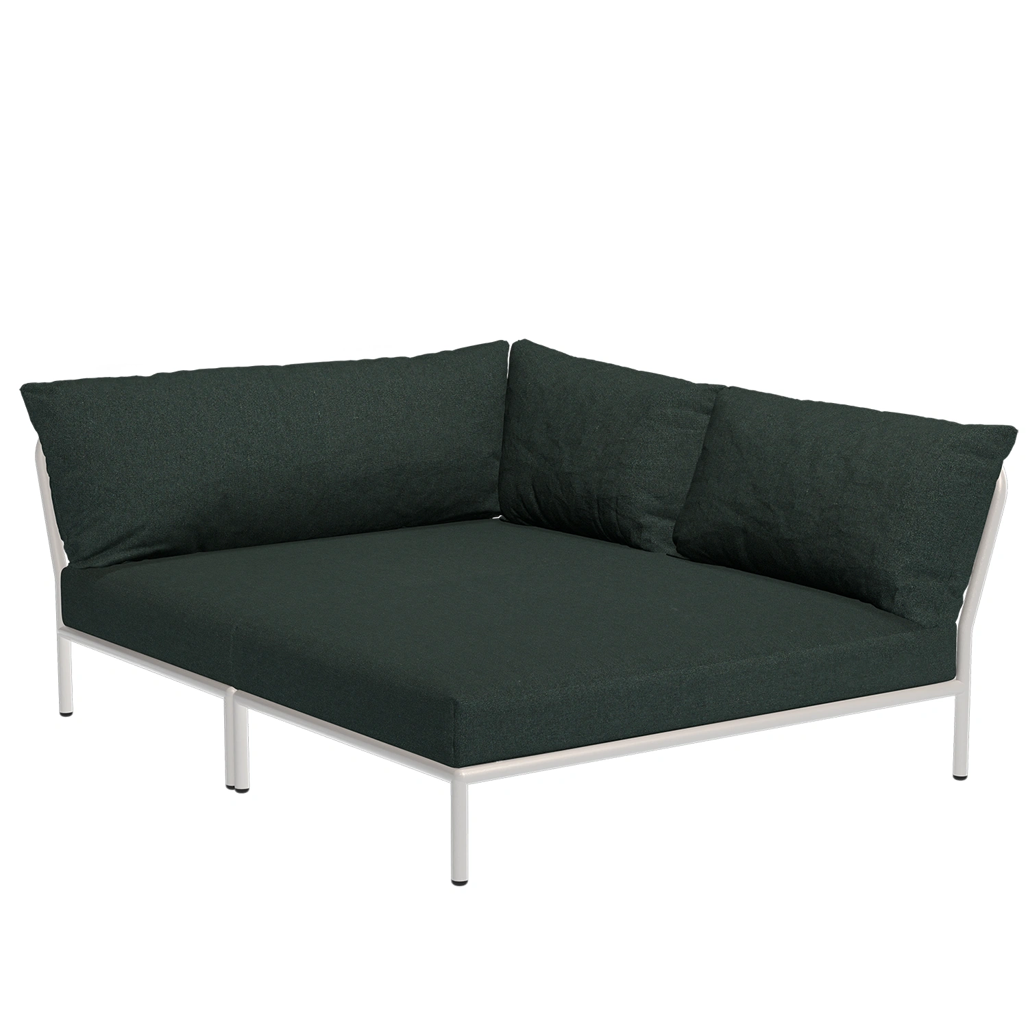 Level är en lounge-serie bestående av flera olika soffmoduler och bord. Detta gör det möjligt att blanda modulerna på många olika sätt till den konstellation just du önskar. Här visas modulen Cozy Corner med dyna i färgen alpingrön.