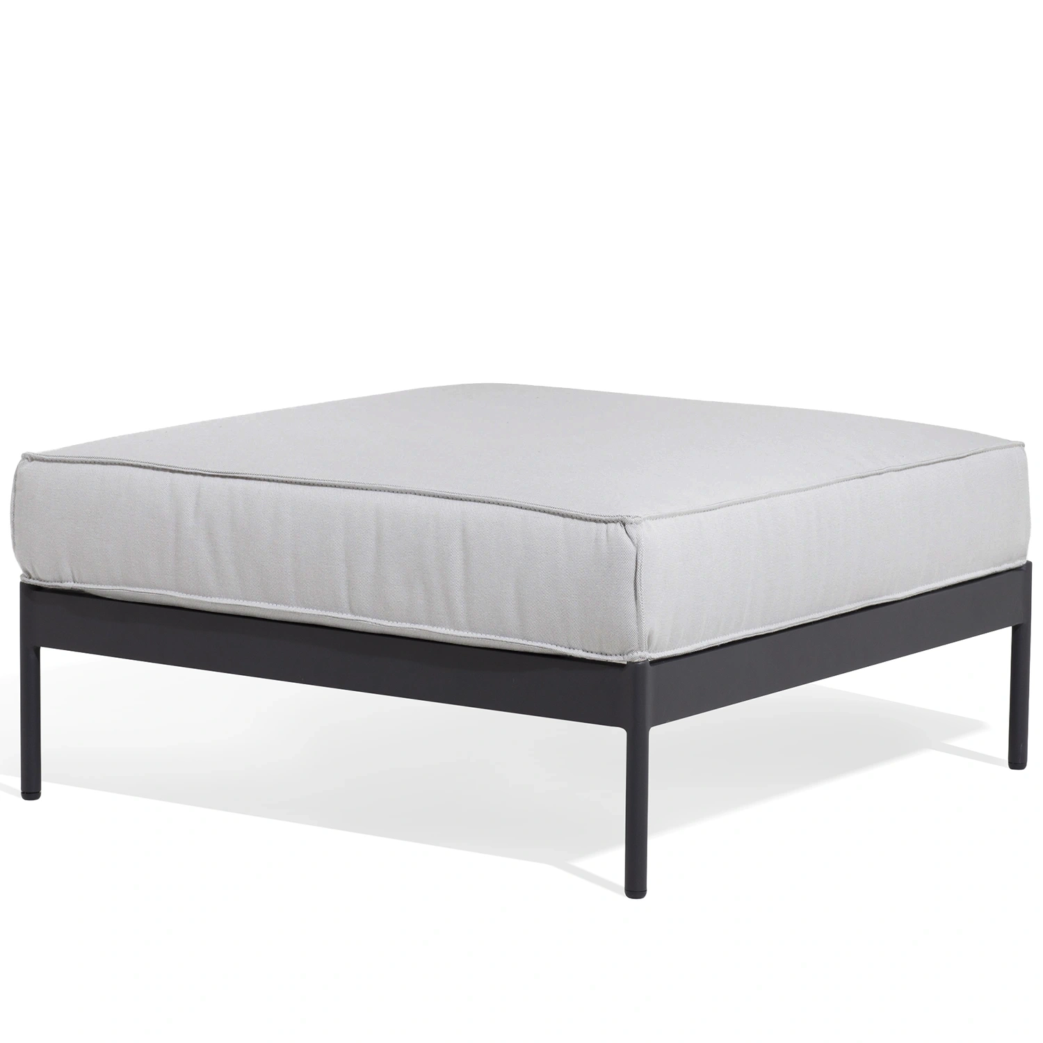 Lidö ottoman är en mångsidig del av den modulära loungeserien Lidö – lika användbar som fotpall, extra sittplats eller för att förlänga en soffa. Den är tillverkad i pulverlackerad aluminium och utrustad med en tygklädd dyna i Sunbrella®, fylld med högkvalitativt utomhusskum som tål både regn och sol. Den kompakta formen gör den enkel att placera, samtidigt som komforten är lika generös som i övriga delar av serien.