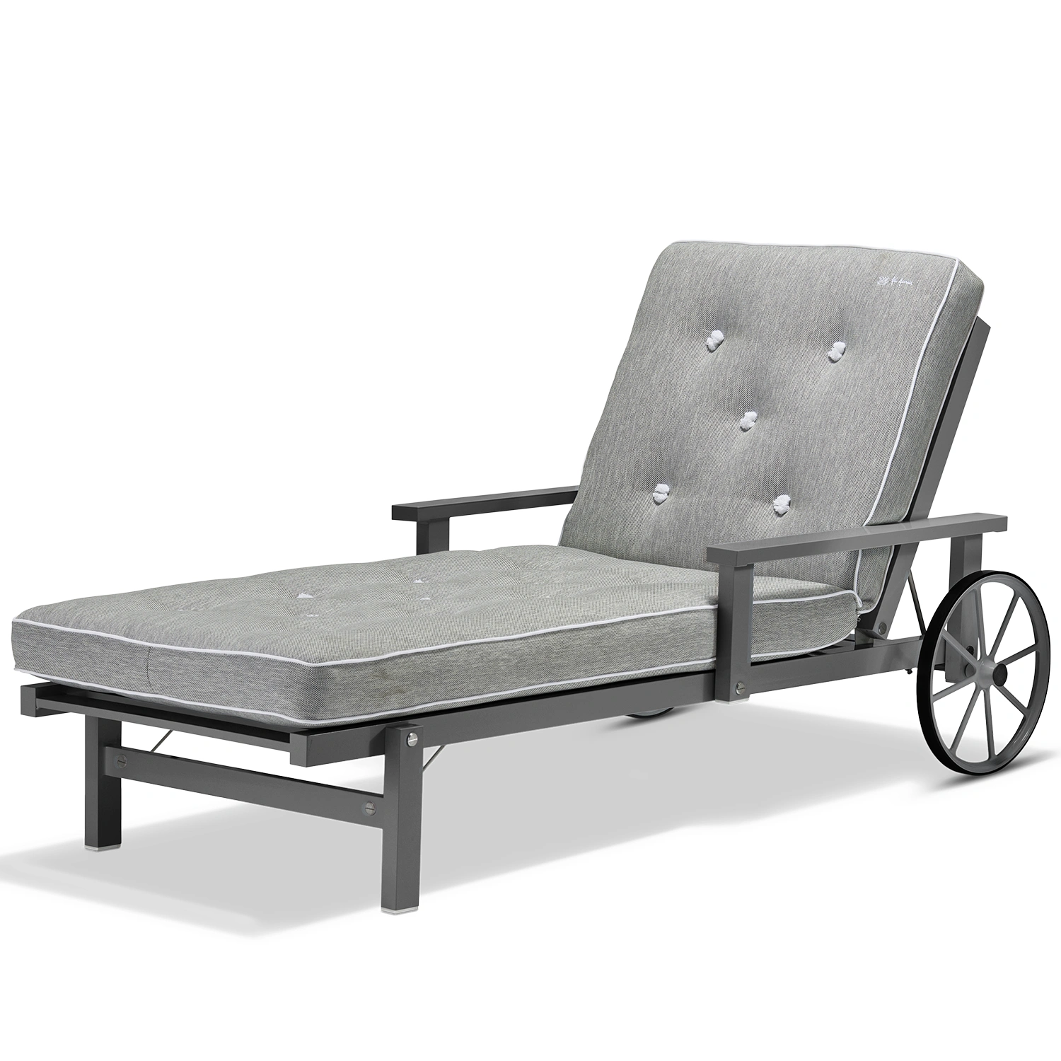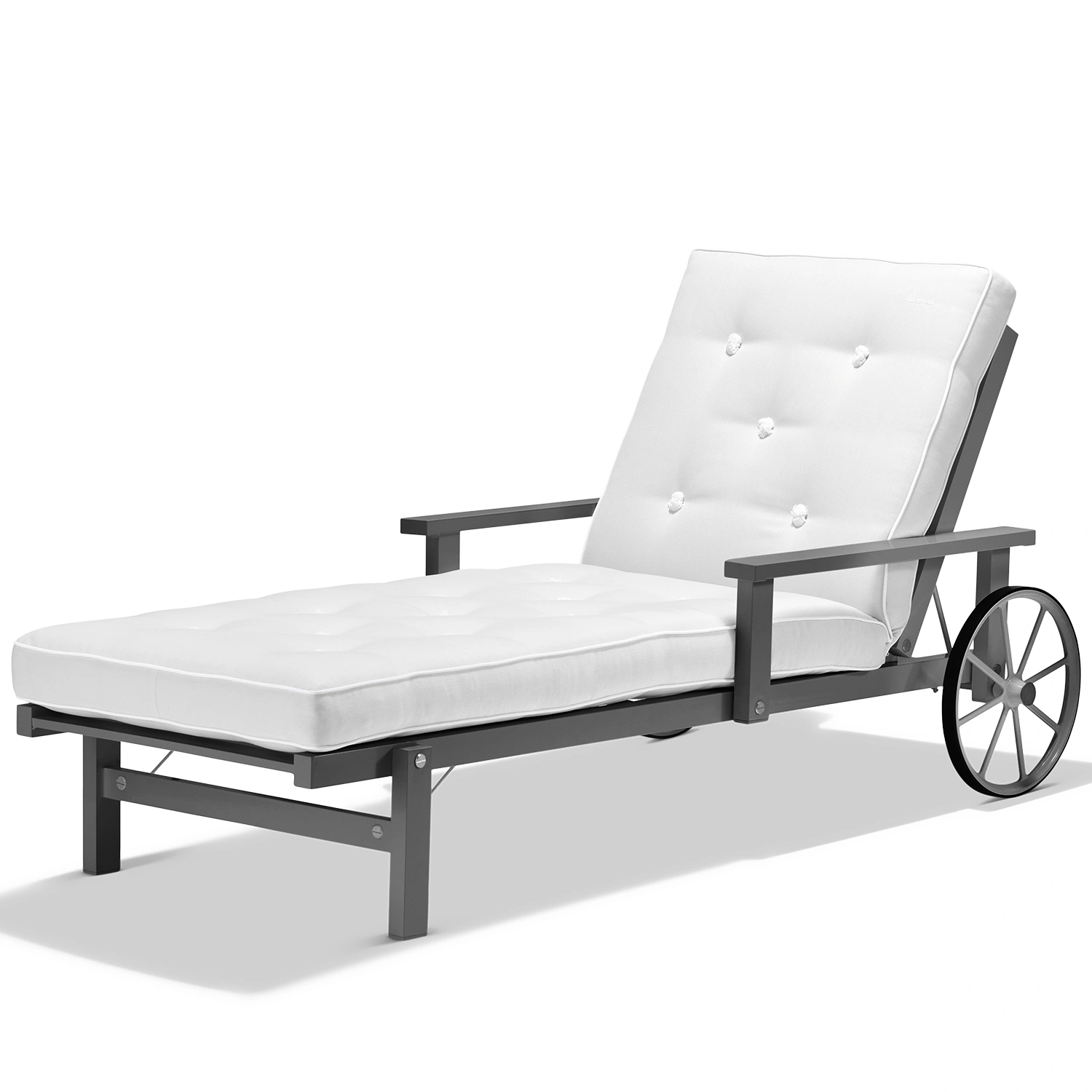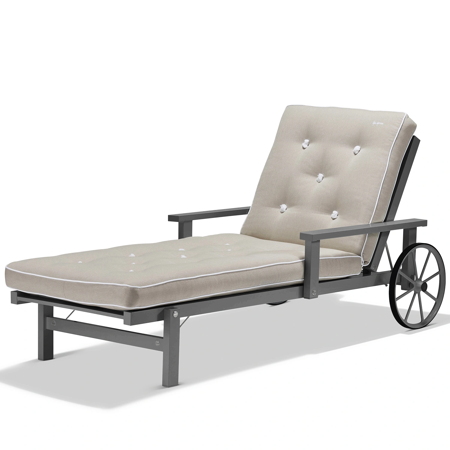 Fri Forms liggvagn 31 i grålackerad aluminium kombinerar klassisk design med praktisk funktion för utomhusmiljöer. Den robusta stommen är tillverkad i aluminium och epoxylackerad i en elegant grå finish som gör möbeln helt underhållsfri och mycket väderbeständig. Aluminiumets naturliga egenskaper gör liggvagnen lätt, rostfri och enkel att flytta, vilket gör den idealisk för det nordiska klimatet. Den behåller sin form och färg år efter år, oavsett om den placeras vid poolen, på altanen eller i trädgården.