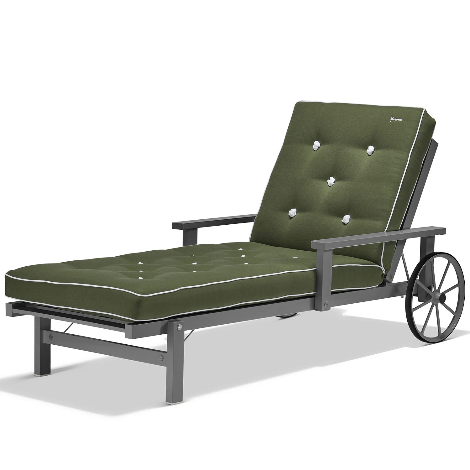 Solsängen levereras här komplett med en skräddarsydd dyna som ger extra komfort och förstärker den klassiska känslan.